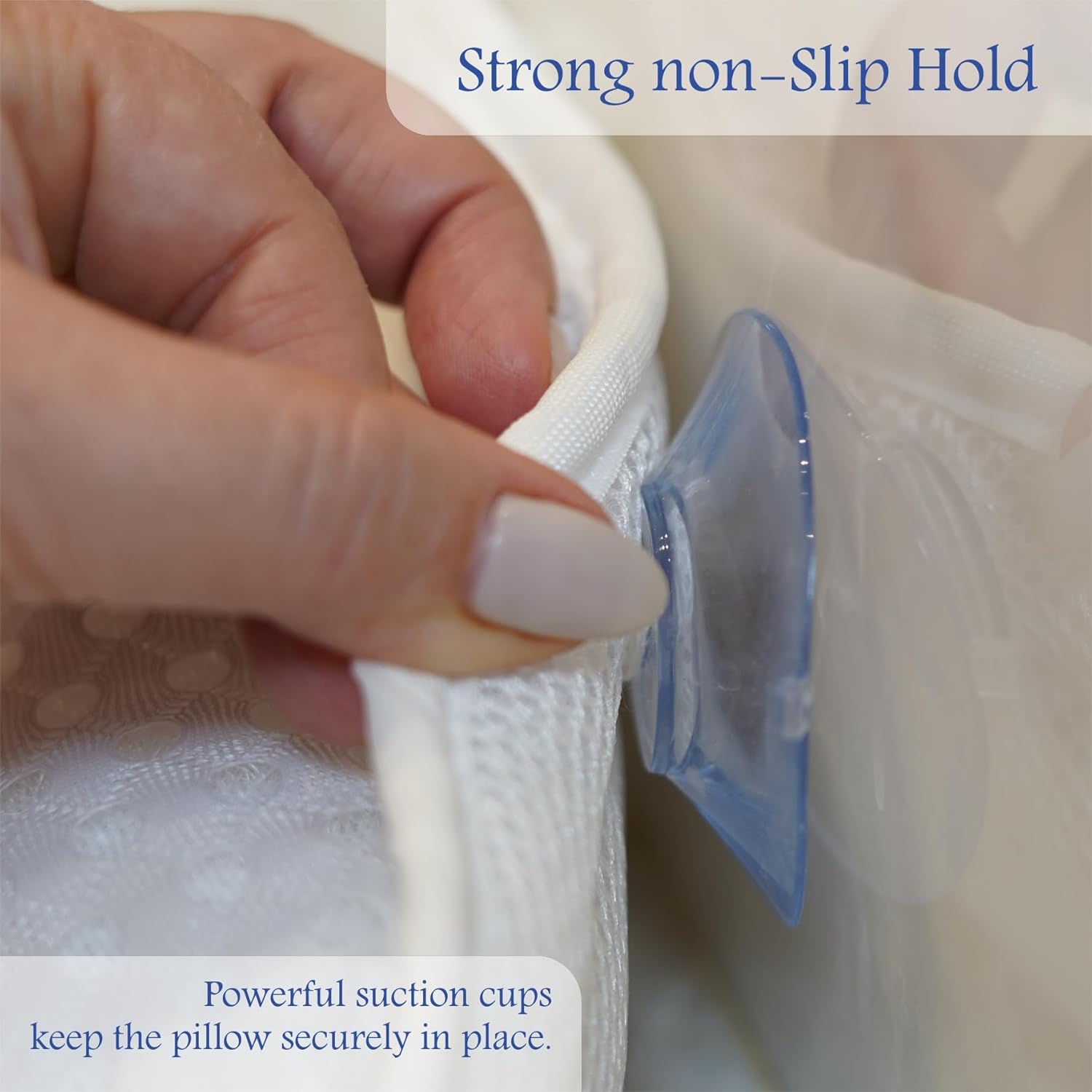 - ✅ "Non-Slip Suction Cups for Secure Placement" - Six powerful suction cups keep the pillow in place without sliding or readjusting, ensuring a worry-free relaxation experience in any standard or large bathtub. Also remove with ease by lifting a tab that's attached to each suction cup. These power suction cups don’t rip off.