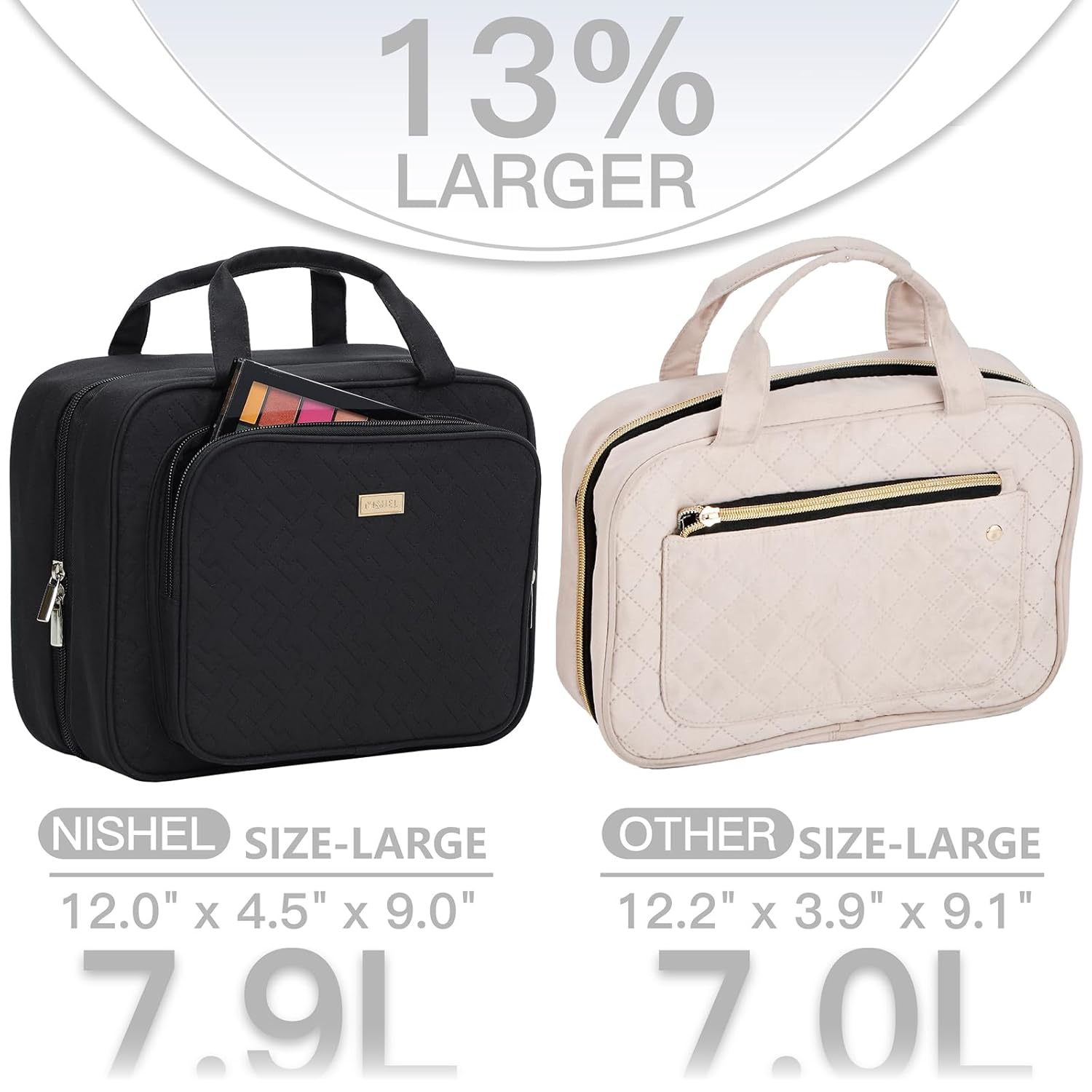 NISHEL Travel Toiletry Bag for Women Large Capacity, Makeup Essentials Organizer, Hanging Case for Accessories, Cosmetics, Black