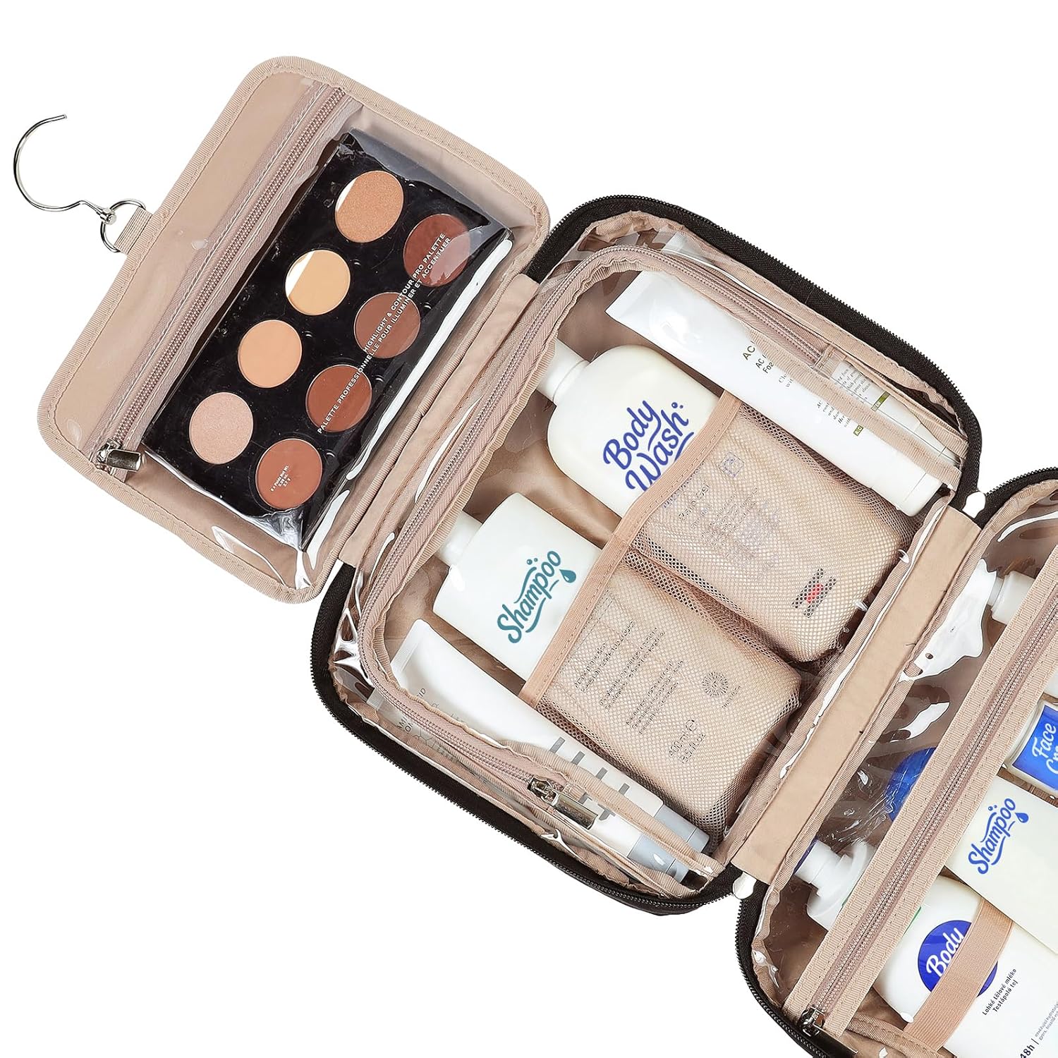 - STURDY HOOK DESIGN - Special U-shape zippers design, take out the toiletries or zip up the toiletry case quickly. No more unpacking, digging through one bag, and laying your stuff on the bathroom counter. Just hang the bag up, grab what you need, and put it back in it