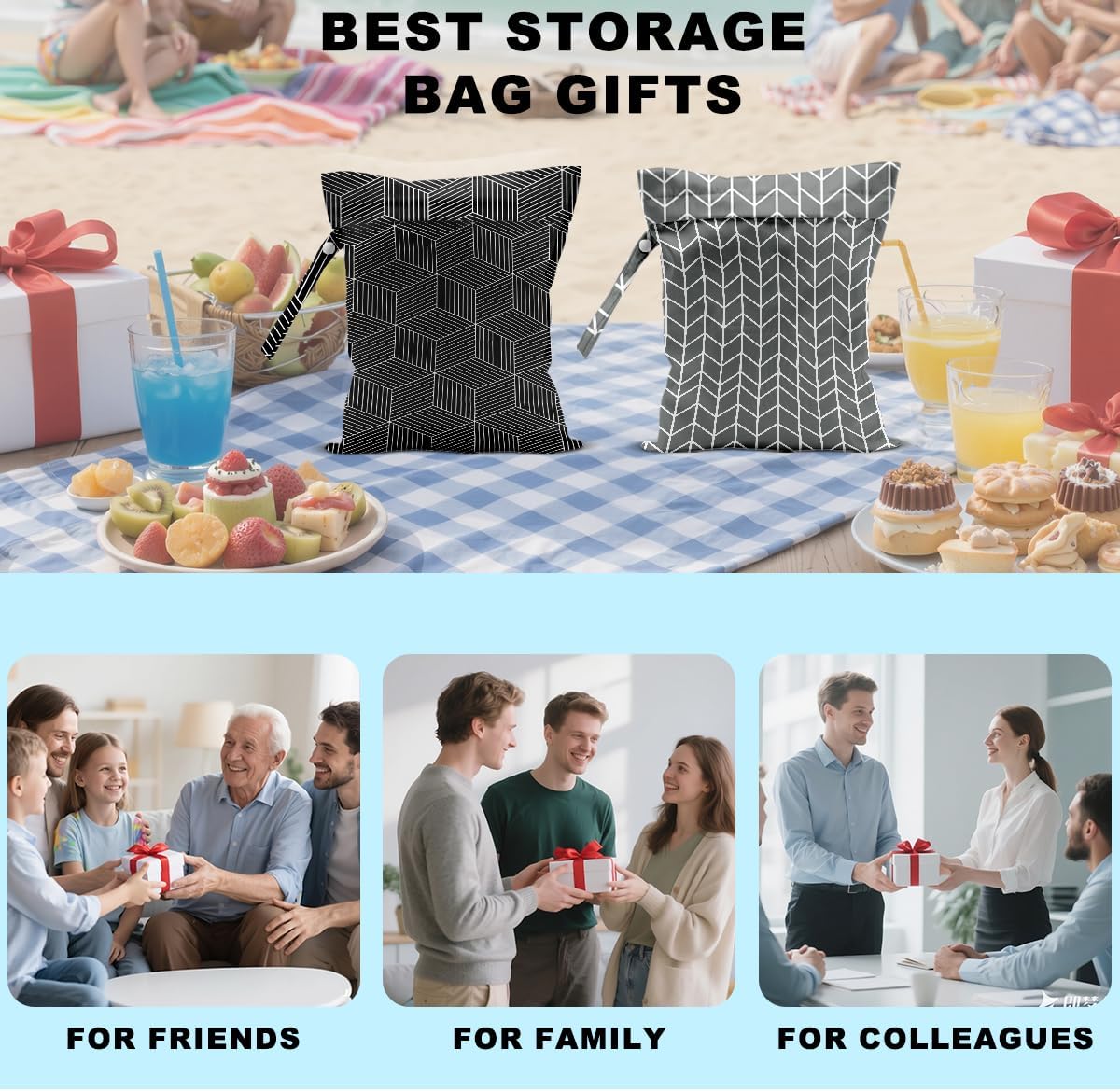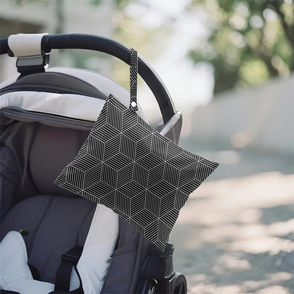 2Pcs Geometry Wet Bag 12x10 Inch, Square Waterproof Travel Laundry Bags, Stripe Washable Reusable Wet Dry Bag for Swimsuit Pool Beach Diapers Dirty Yoga Gym Clothes, Travel Gifts for Women Friend