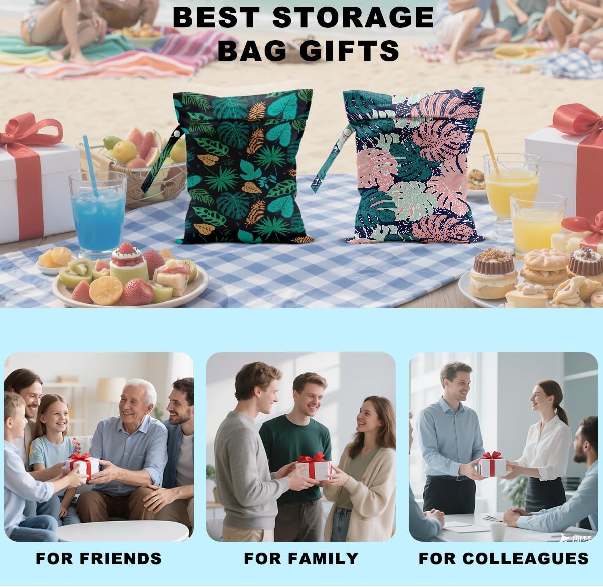 2Pcs Palm Leaves Wet Bag 12x10 Inch, Plants Waterproof Reusable Wet Dry Bag, Tropical Washable Travel Laundry Bags for Swimsuit Beach Diapers Dirty Yoga Gym Clothes, Plants Gifts for Women Friend