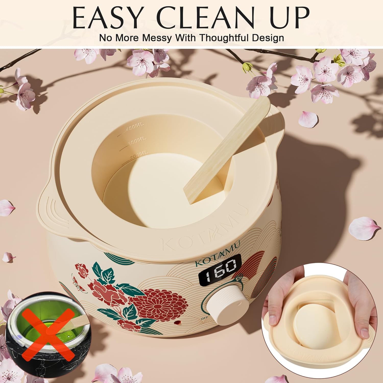 - 10 MINUTES TO HEAT - Uneven melting leads to brittle wax? Not anymore! KOTAMU wax machine features innovative PTC technology and an "Automatic Keep Warm" function, ensuring your wax beans always stays ready for serving! No wait, just smooth application