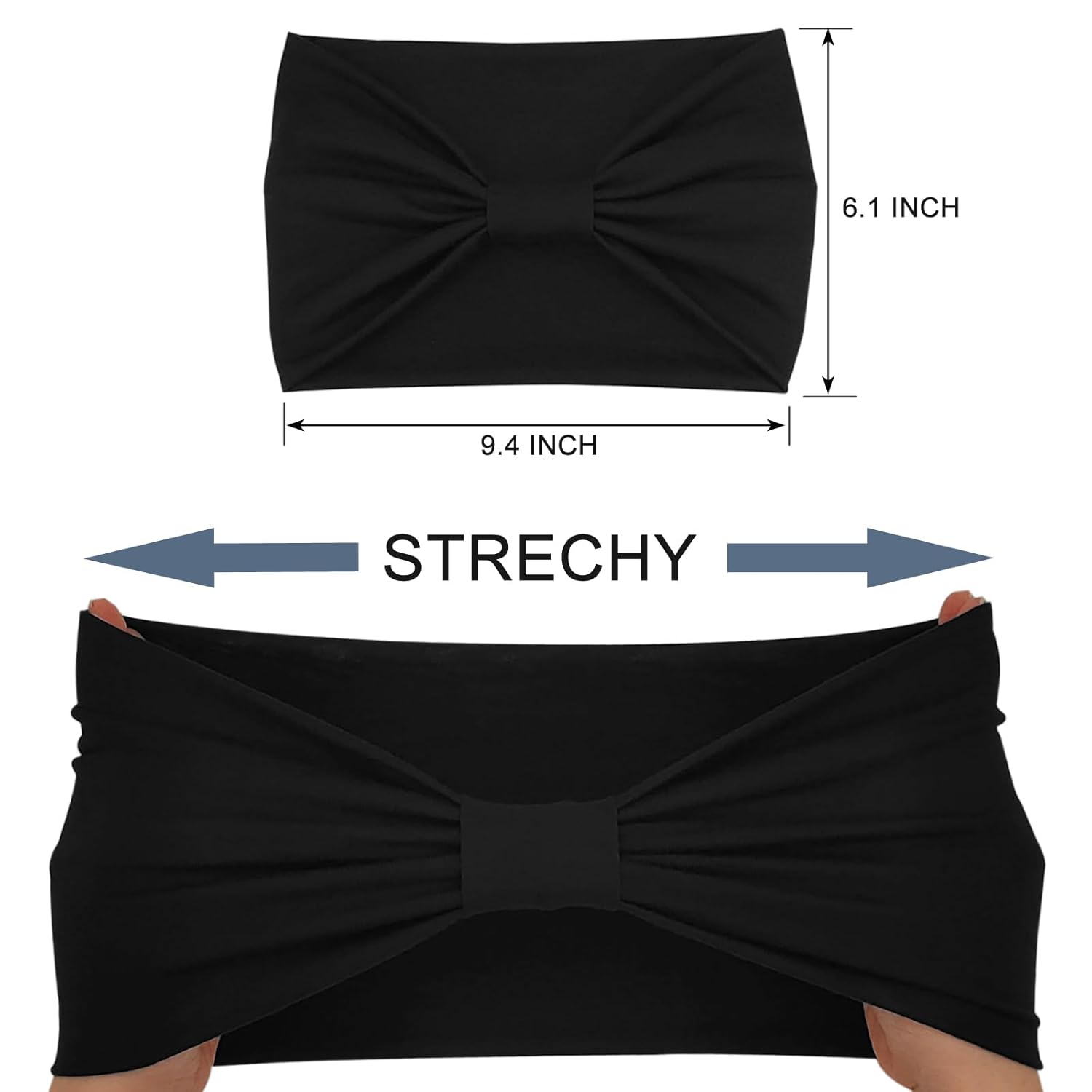 Wide Boho Headbands for Women Fashion Knotted Headband Yoga Workout Hair Accessories African Head Wrap Black 4 Pack