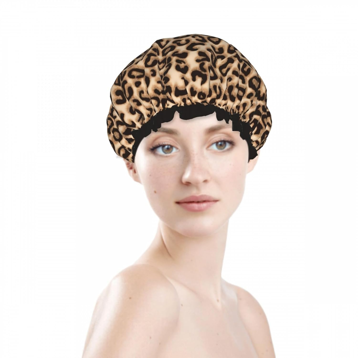 - Wide Application: The fashion leopard shower cap not only is it a shower miracle, it's also your hair care butler. Whether you are bathing, cleansing, cooking or facial care, can keep your hair dry.