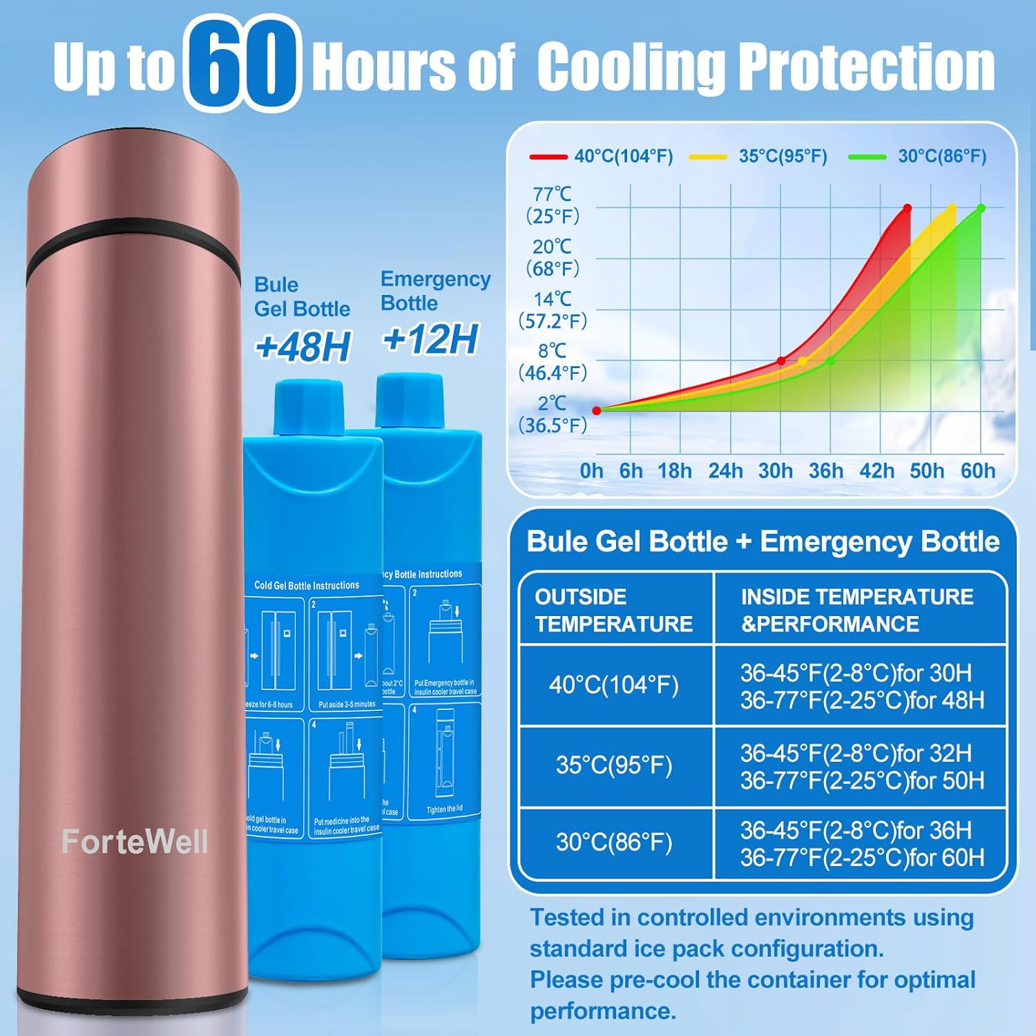 - 【60-Hour Insulin Cooler for Travel and Daily Use】 - This insulin travel case keeps your medications cool for up to 60 hours using advanced vacuum insulation and bio-gel ice packs. Ideal for long trips, outdoor activities, or extended business travel – your insulin stays effective and safe