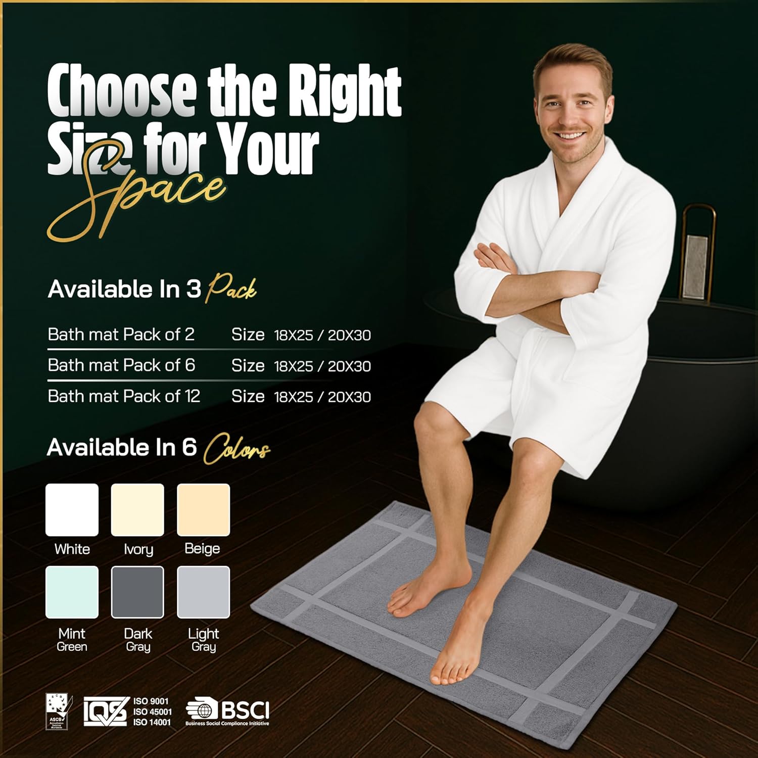 - Made from 100% cotton : Our bath mats for bathroom offer superior softness and absorbency. This 6-pack bath mat set includes 18X25" mats that function as a tub mat, quickly soaking up water and keeping your feet dry.
