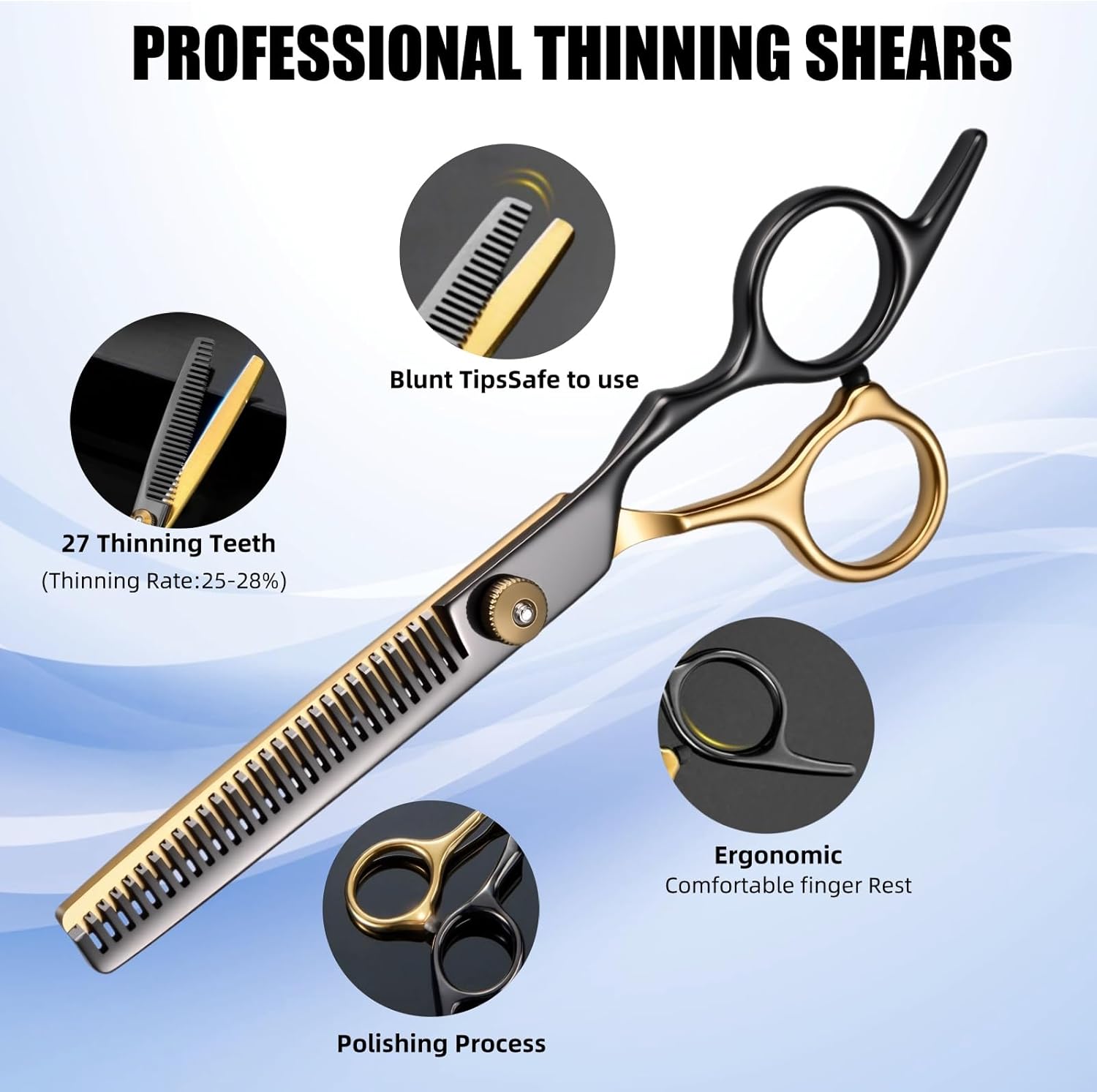 - Included Components : 1 x Hair Thinning Comb; 2 x Hair Comb, 2 x Hair Clips; 1 x Scissors Adjuster, 1 x Hair Cutting Scissors; 1 x Hair Thinning Scissors, 1 x Gift Leather Bag, 1 x Salon Cape; 1 x Cleaning Cloth 1 x Hair Thinning Comb; 2 x Hair Comb, 2 x Hair Clips; 1 x Scissors Adjuster, 1 x Hair Cutting Scissors; 1 x Hair Thinning Scissors,… See more