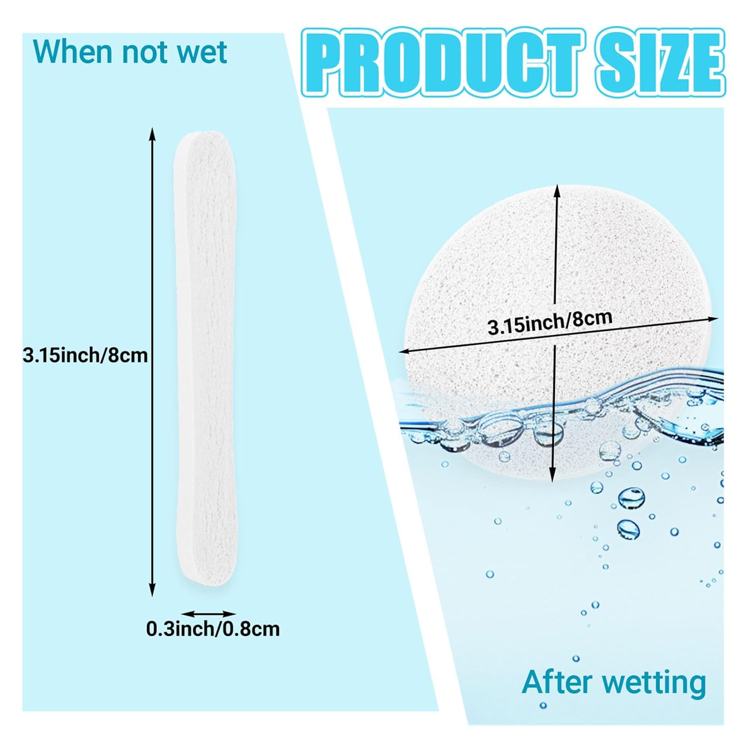 - 【Suitable Size】The size of the compressed round face sponge pad is very mini,easy to store.After absorption becomes a round shape,each sponge expands to 3.15"(8cm) dia and 3/8" thick when saturated.
