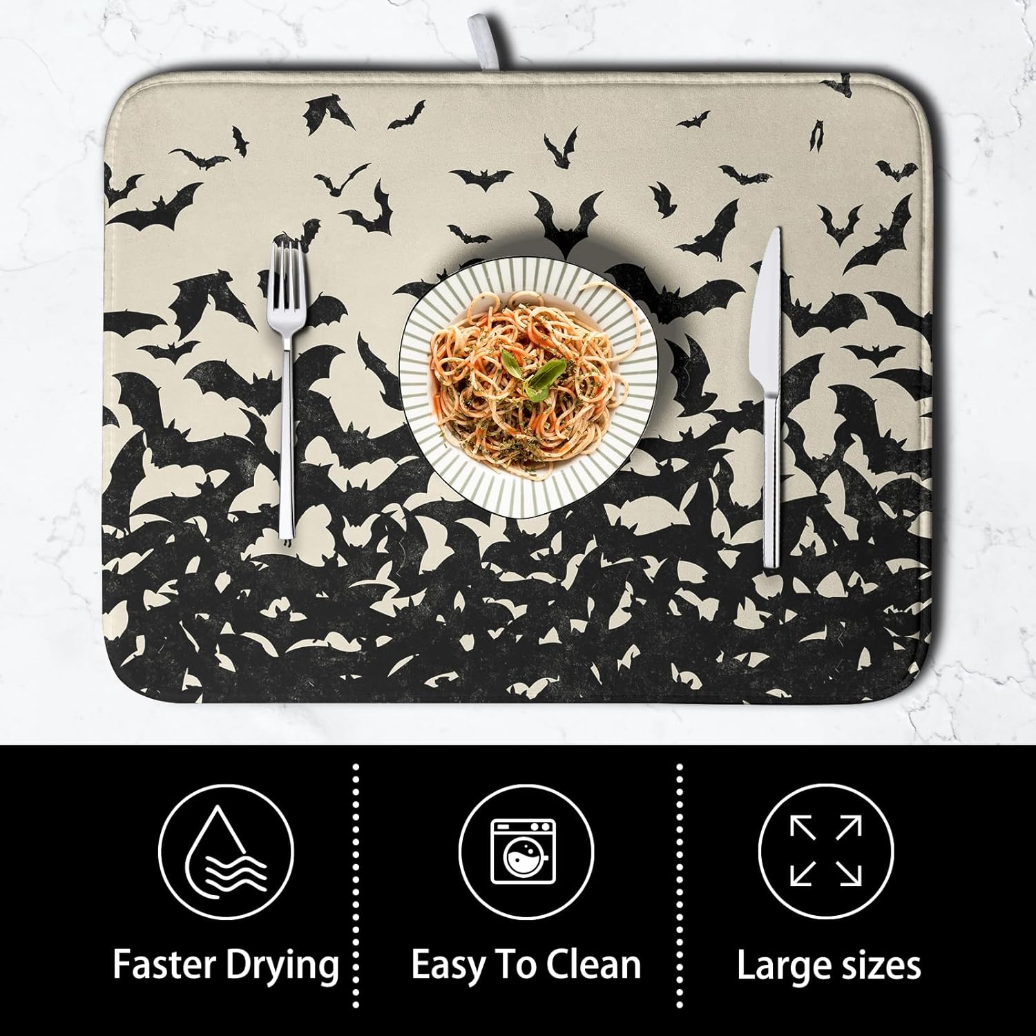 Halloween Bats Halloween Dish Drying Mat for Kitchen Counter 16x18 Inch Microfiber Absorbent Drying Mats Washable Dishes Drainer Mats Reusable Dish Rack Pad for Coffee Bar