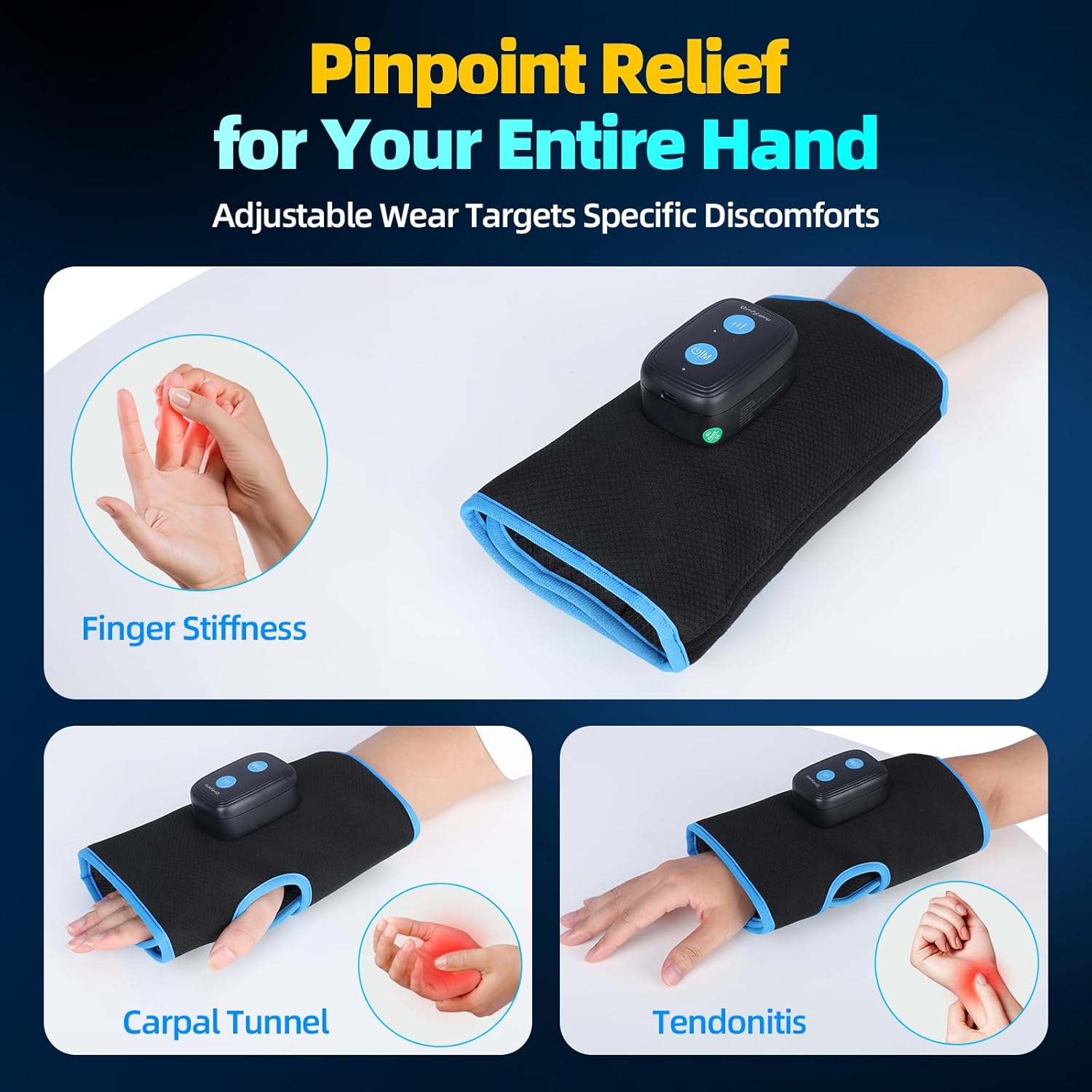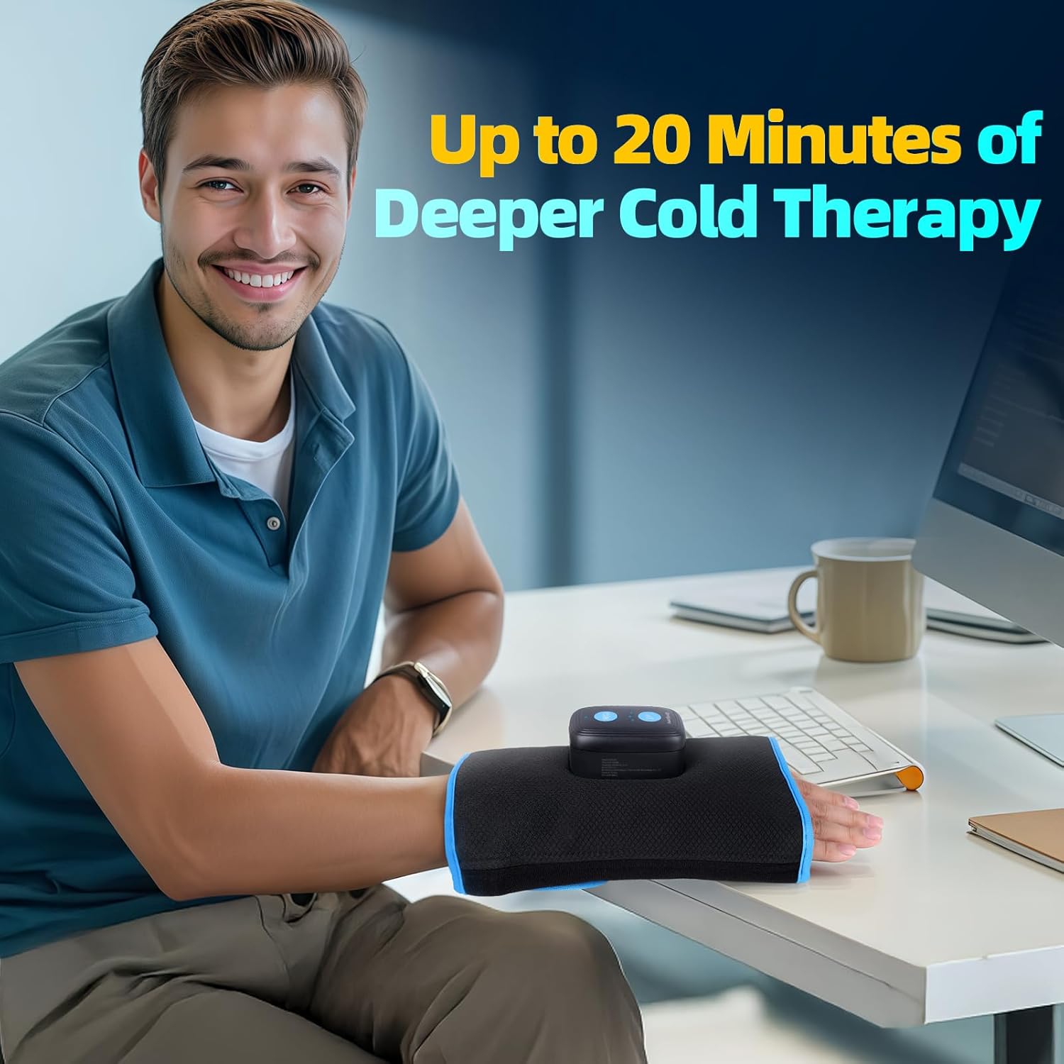 - Deeper Hot & Cold Therapy, Smarter Recovery : Go beyond basic ice packs with a device that combines dynamic and static compression with targeted hot and cold therapy. In Acute Injury Phase (0-72 h)—like a sprain or the onset of carpal tunnel discomfort—use cold therapy with dynamic compression to soothe sharp pain, reduce swelling, and flush out inflammation, or switch to static mode for steady pressure that functions like a supportive wrist brace. In the Recovery Phase (Day 4+), switch to heat with dynamic compression to ease stiffness, improve mobility, and promote healing in deeper tissues. Ideal for tendon strain, arthritis, wrist fracture, or post-repetitive stress recovery.