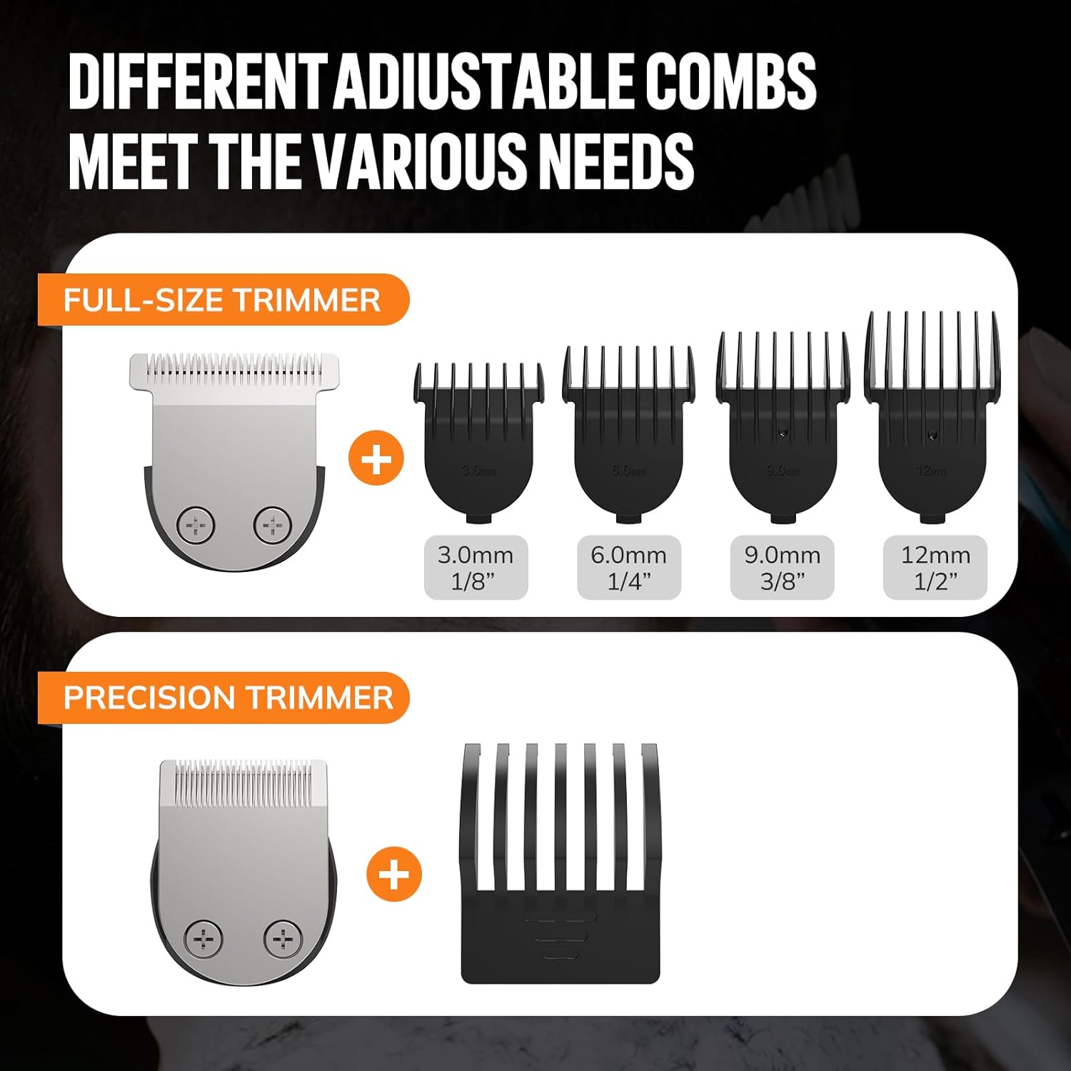 - Exquisite Craftsmanship Design and Materials: This men's Beard Trimmer and Hair Clipper Set uses high-performance stainless steel blades with a precise gap design to improve safety and minimize friction while trimming. The R-shaped 360Β° skin-friendly blunt edge blades trim quickly and safely without pulling or irritating the skin. This hair clipper is versatile enough to meet your needs at home or in a professional environment