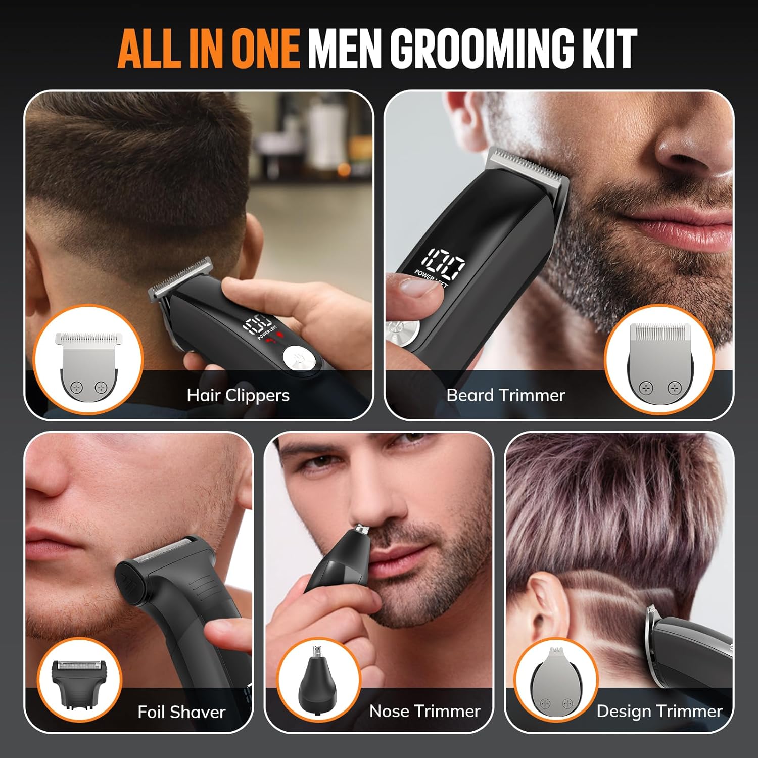 Beard Trimmer for Men Hair Clippers - 6 in 1 Professional Grooming Kit Cordless Hair Clipper Trimmers Set Waterproof,Electric Shaver Razor for Face Nose Body Mustache