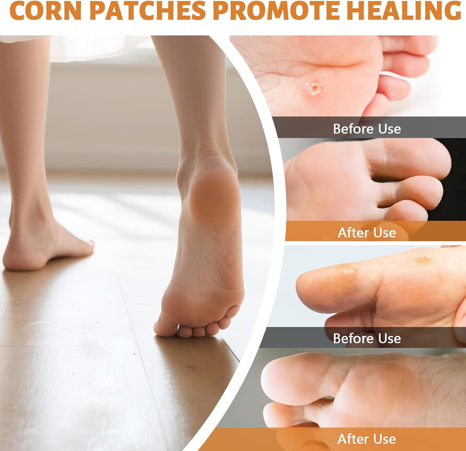 - Skin Protocol: 1.Wash area with soap and pat dry completely. For sensitive users, petroleum jelly can be applied to the healthy skin around the corn to create an irritation barrier. 2.Center red medicated zone over corn and press firmly 15 sec. For high-flex areas (e.g. pinky toe edge), reinforce edges with medical tape. 3.Repeat the treatment daily as part of a 14-day treatment cycle.