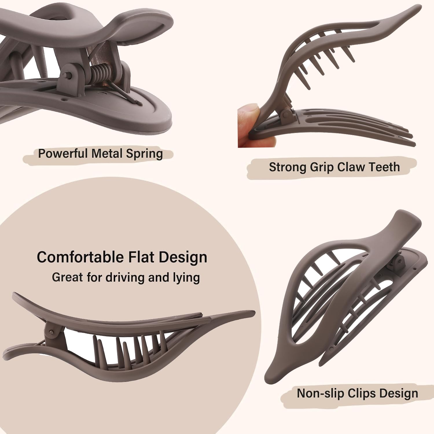 - Size&Colors-The duckbill hair clips size is 4.7x1.9 inches, the flat oval clips size is 4.3*1.3 inches and the flower clips size is 4.3*2 inches, they are lightweight and easier to carry than the traditional claw clips ,each set comes in 8 neutral matte colors and you can choose different colors to match your daily outfits