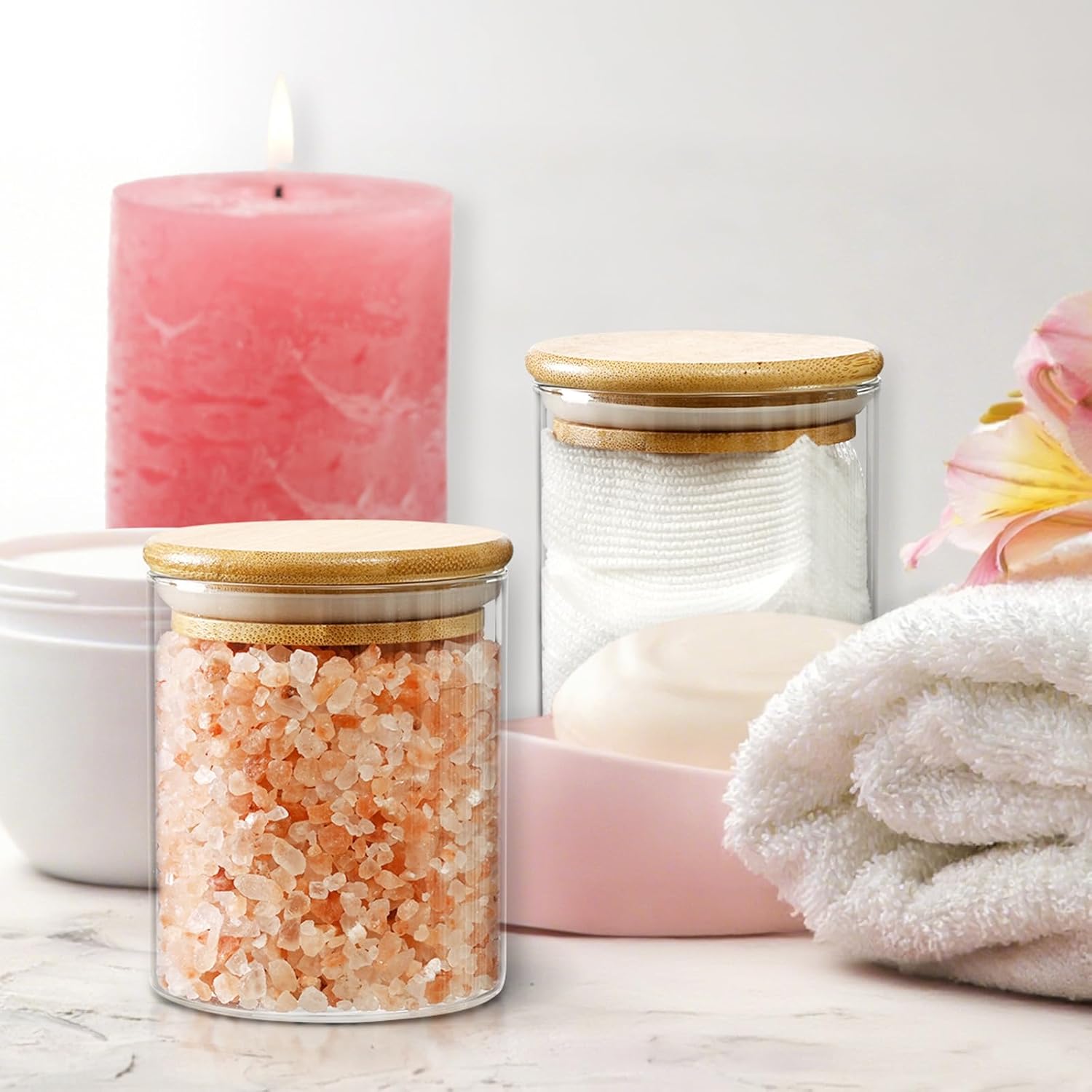 - PERFECT STORAGE Apothecary Jars: The lid of the glass qtip holder fits the jar 100% tightly, dustproof, easy to open and close, and each apothecary jars with lids is equipped with a natural bamboo lid and a food-grade rubber ring, which is dustproof, and easily creates a sealed atmosphere.
