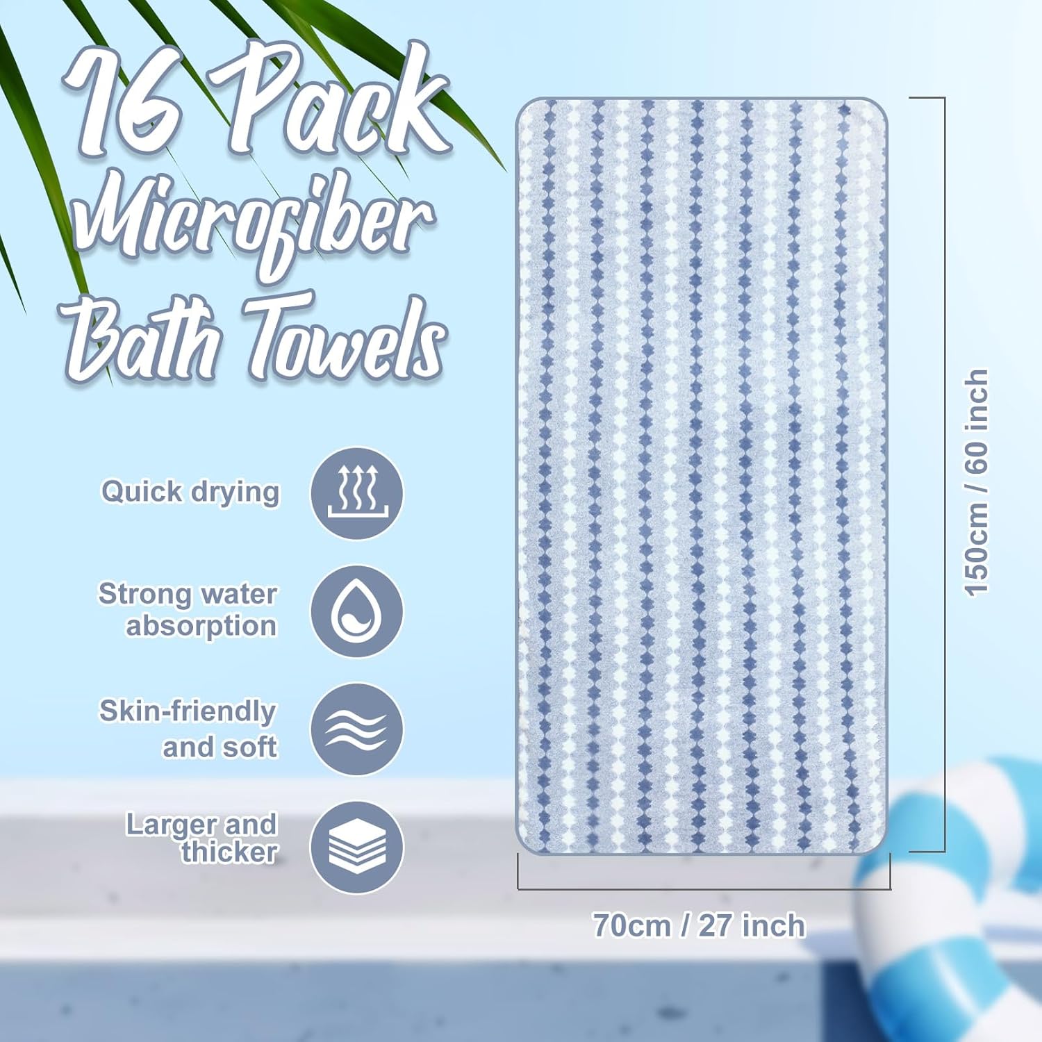 16 Pack Microfiber Bath Towels Bulk 27'' x 60'' Oversized Size Bath Towel Highly Absorbent Extra Large Soft Drying for Shower Beach Salon Winter Sport Spa Gym (Cone,Blue)
