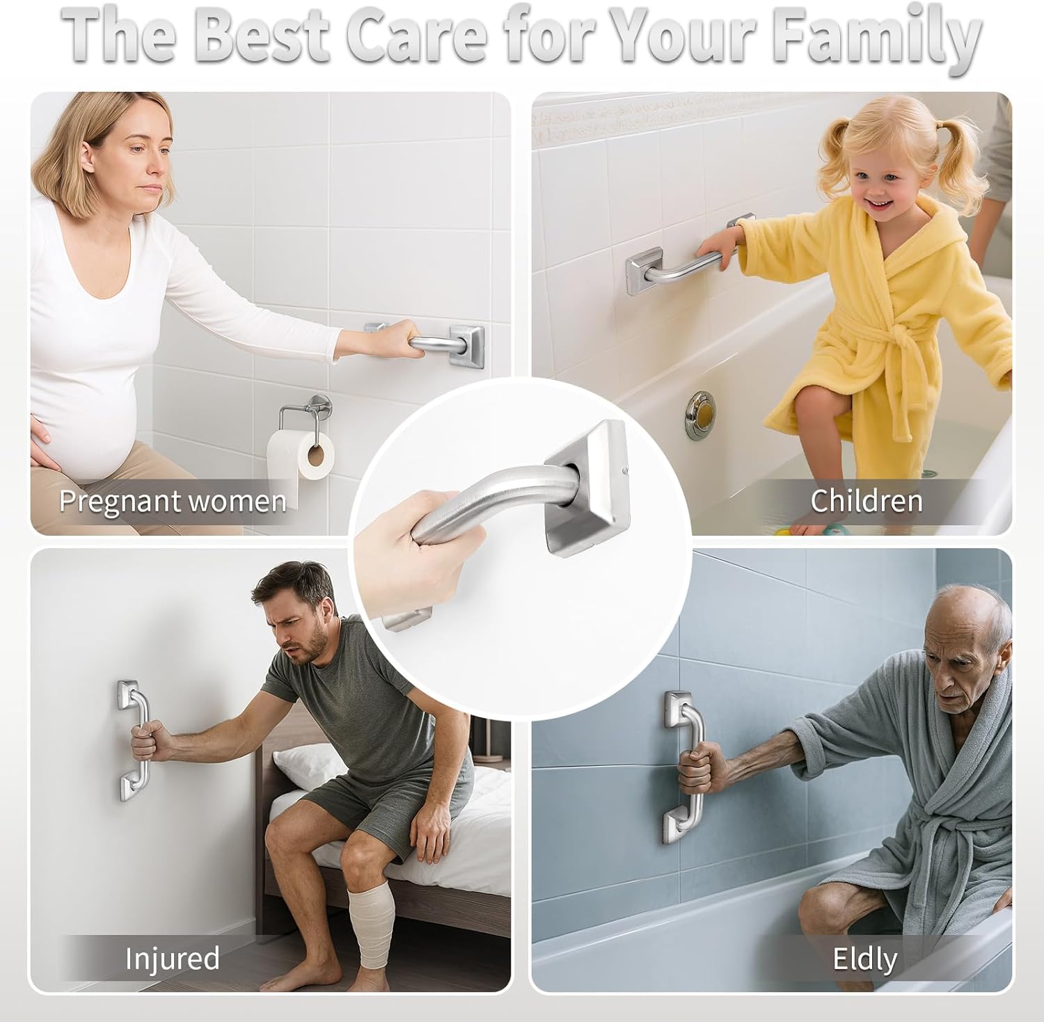 - 【Wide Usage Applications】Shower grab bars can not only be used in bathtubs and showers to ensure your safety but are also suitable for stairs, toilet, bedrooms, and hallways. They are particularly beneficial for children, the elderly, individuals with disabilities (This size fits a thin build well)