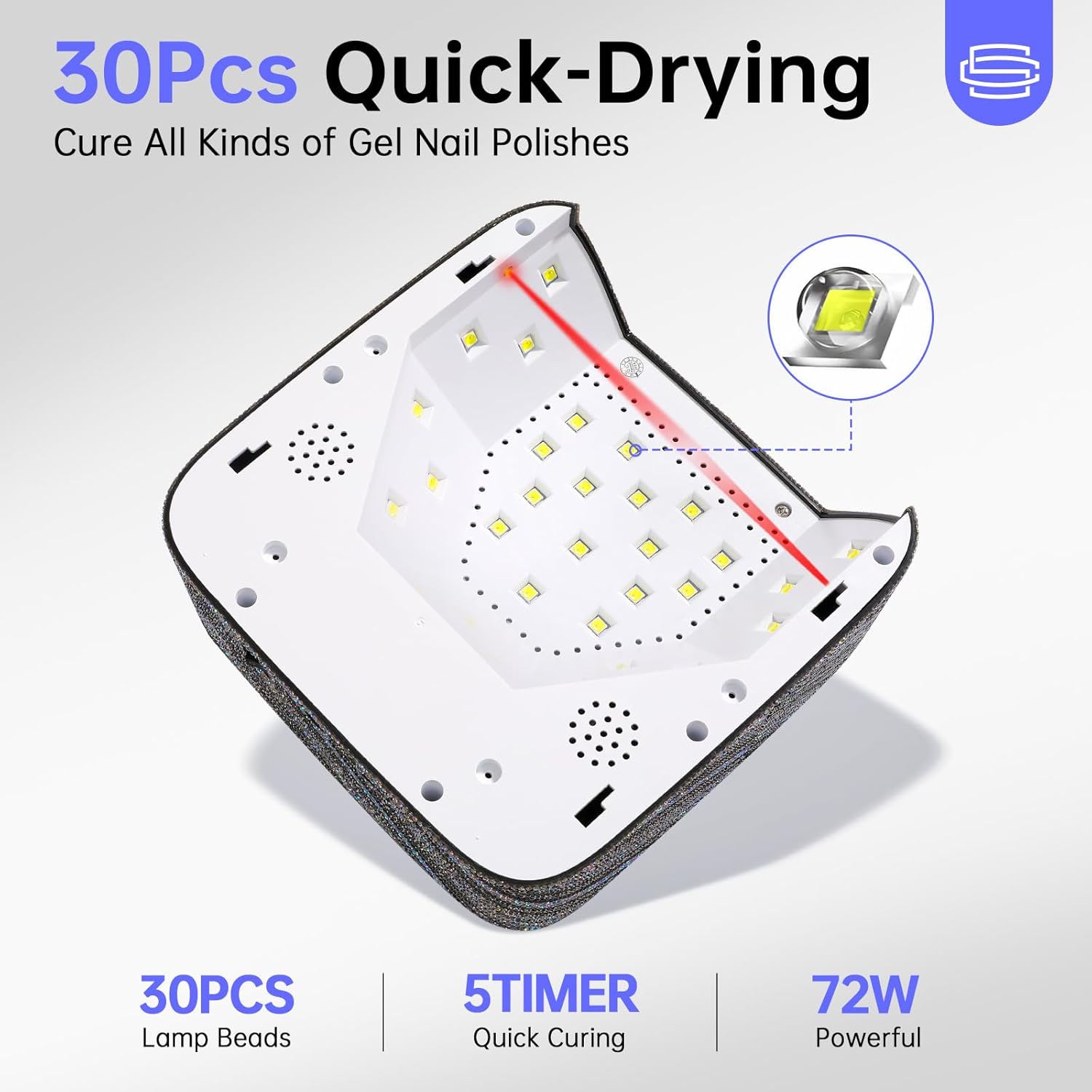 UV LED Nail Lamp 72W Rechargeable Sparkly Nail Dryer Gel Polish Light with 5 Timer Setting Professional Quick Dry Curing Lamp with Display Auto Sensor for Salon & Home