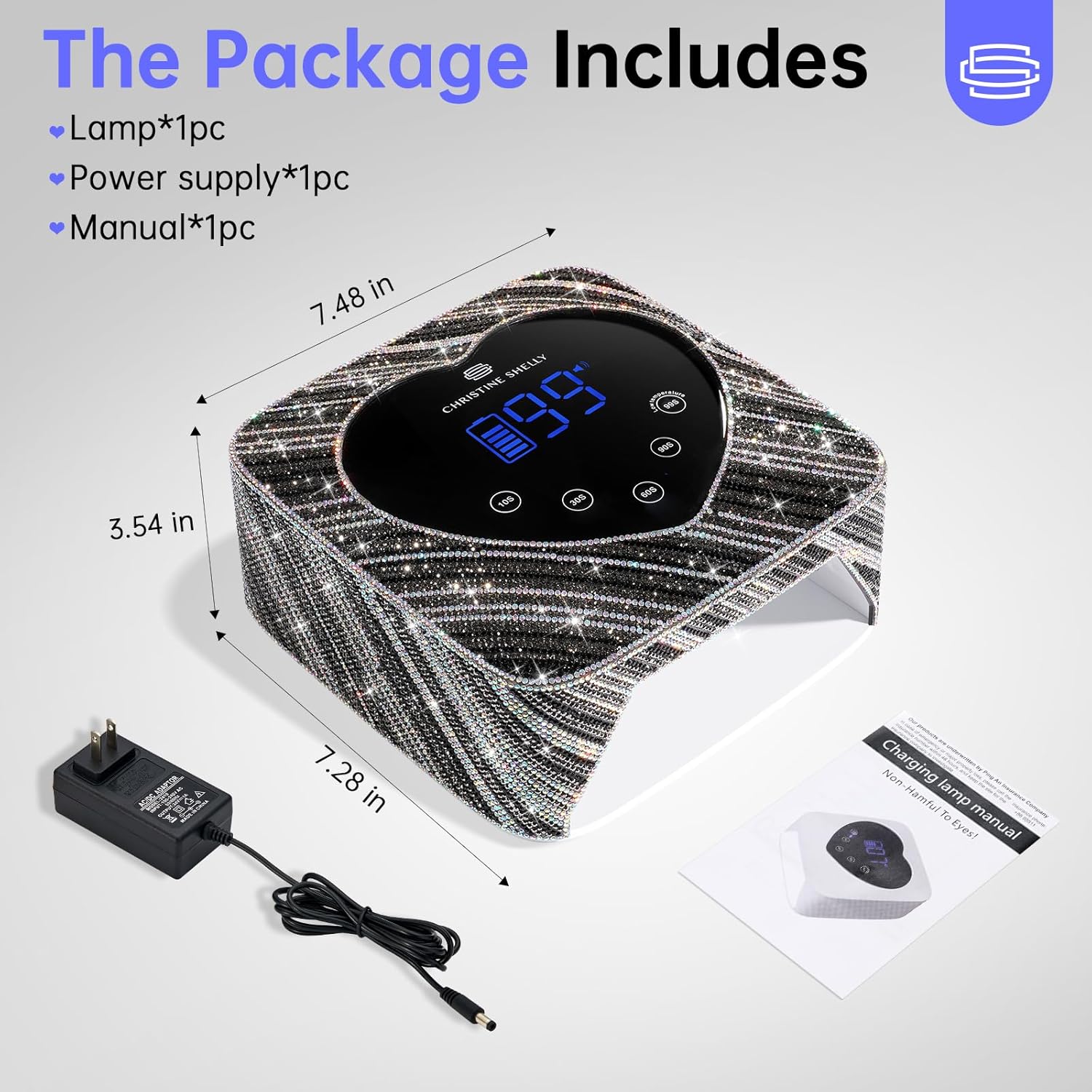 - 【Sparkling & Cordless】The diamond cordless gel nail light incorporates a built-in rechargeable battery, granting you an uninterrupted usage time of up to 6 hours following a full charge cycle of approximately 3 hours. Every inch of the product is meticulously adorned with hand-applied diamonds, resulting in a stunningly shiny surface. The meticulous craftsmanship gives the product a unique and distinctive appeal