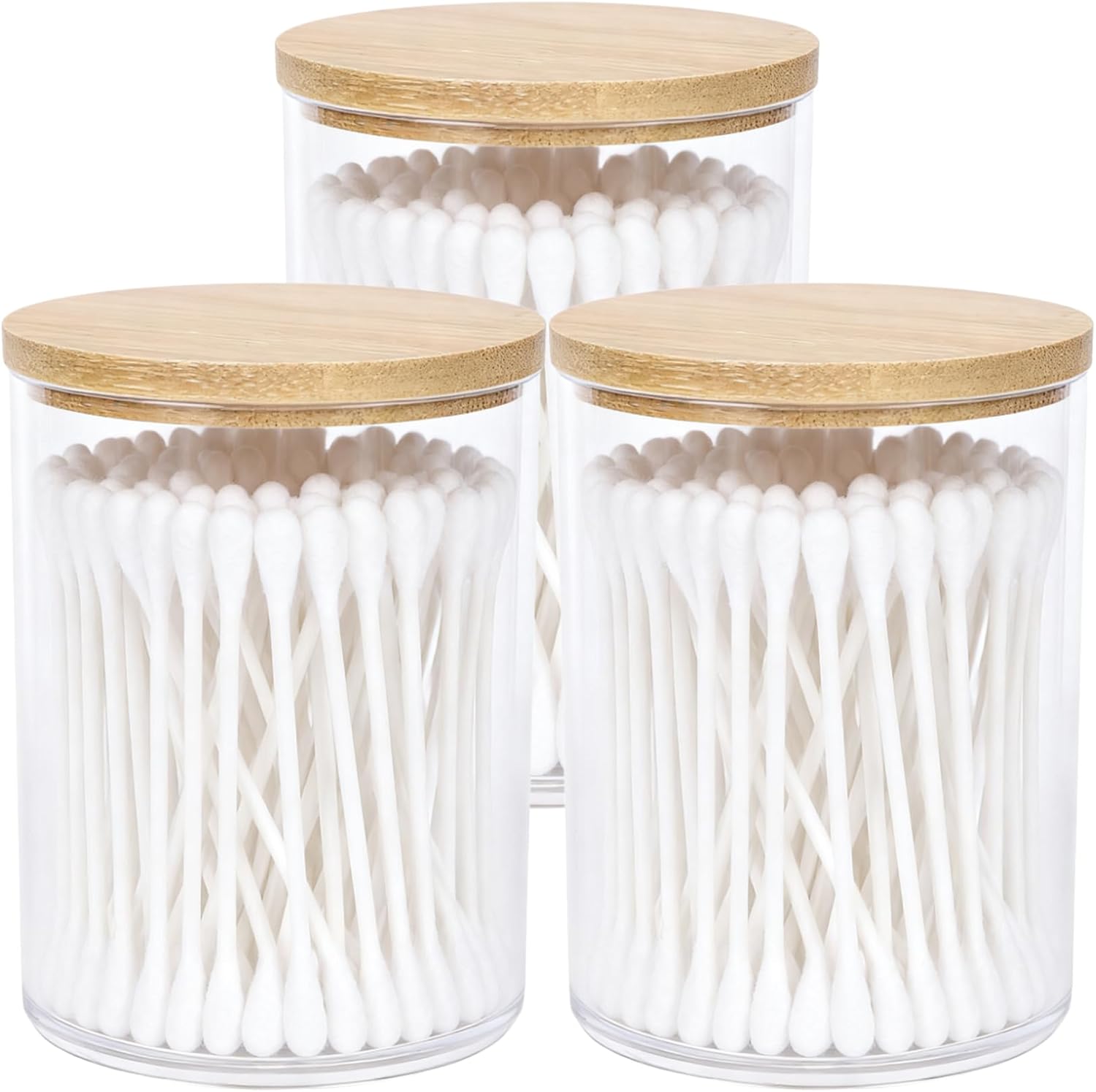 AXX Qtip Dispenser Apothecary Jars Bathroom - Qtip Holder Storage Canister Clear Plastic Jar for Cotton Swab,Q-Tips,Cotton Rounds (H#Bamboo 3Pcs)
