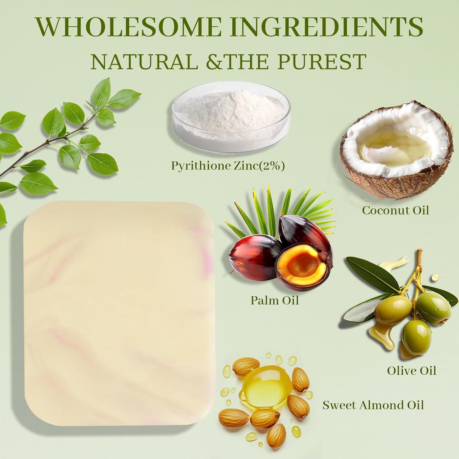 3 PCS Zinc Pyrithione Soap Bars, Gentle Exfoliating Cleansing Bath Bar for Body & Face Skin Care