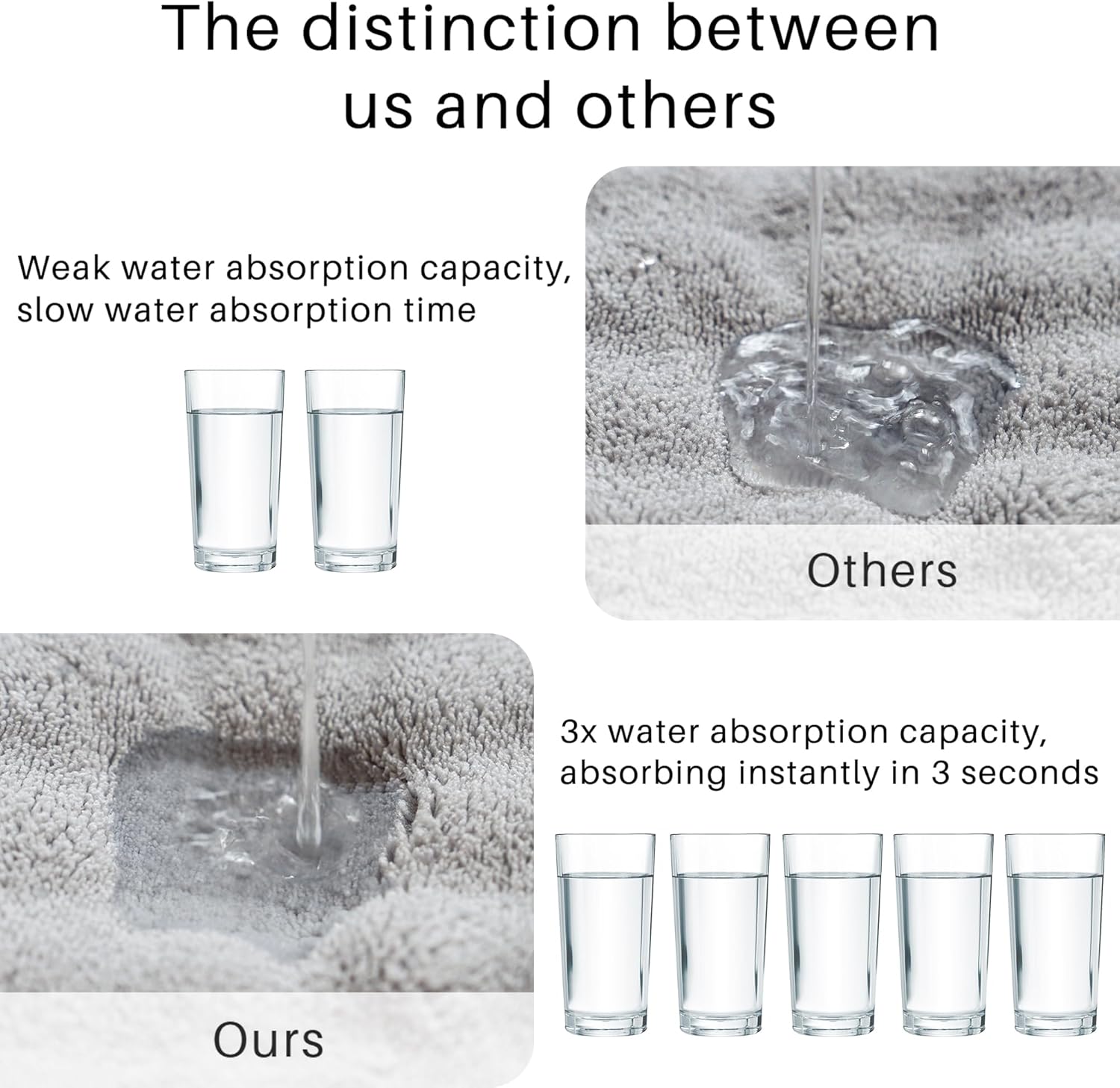 - 2X Faster Drying with Ultra Absorbent Microfiber:Our premium microfiber hair towel absorbs water twice as fast as regular cotton towels. The extra-long plush fibers gently dry hair without friction, reducing frizz and breakage for smoother, healthier looking hair. Ideal for all hair types - curly, straight, thick or fine.