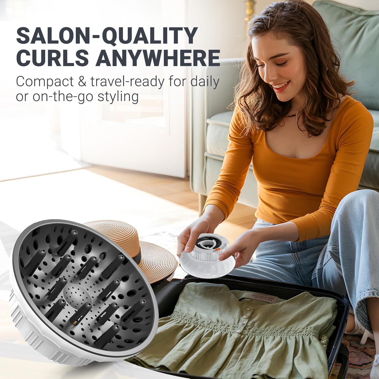 - 【Travel-Friendly】- Compact & Lightweight Design. Weighs only 6.3oz—fits easily in suitcases, gym bags, or vanity drawers. Achieve perfect curls anywhere—ideal for vacations, hotels, or busy mornings.