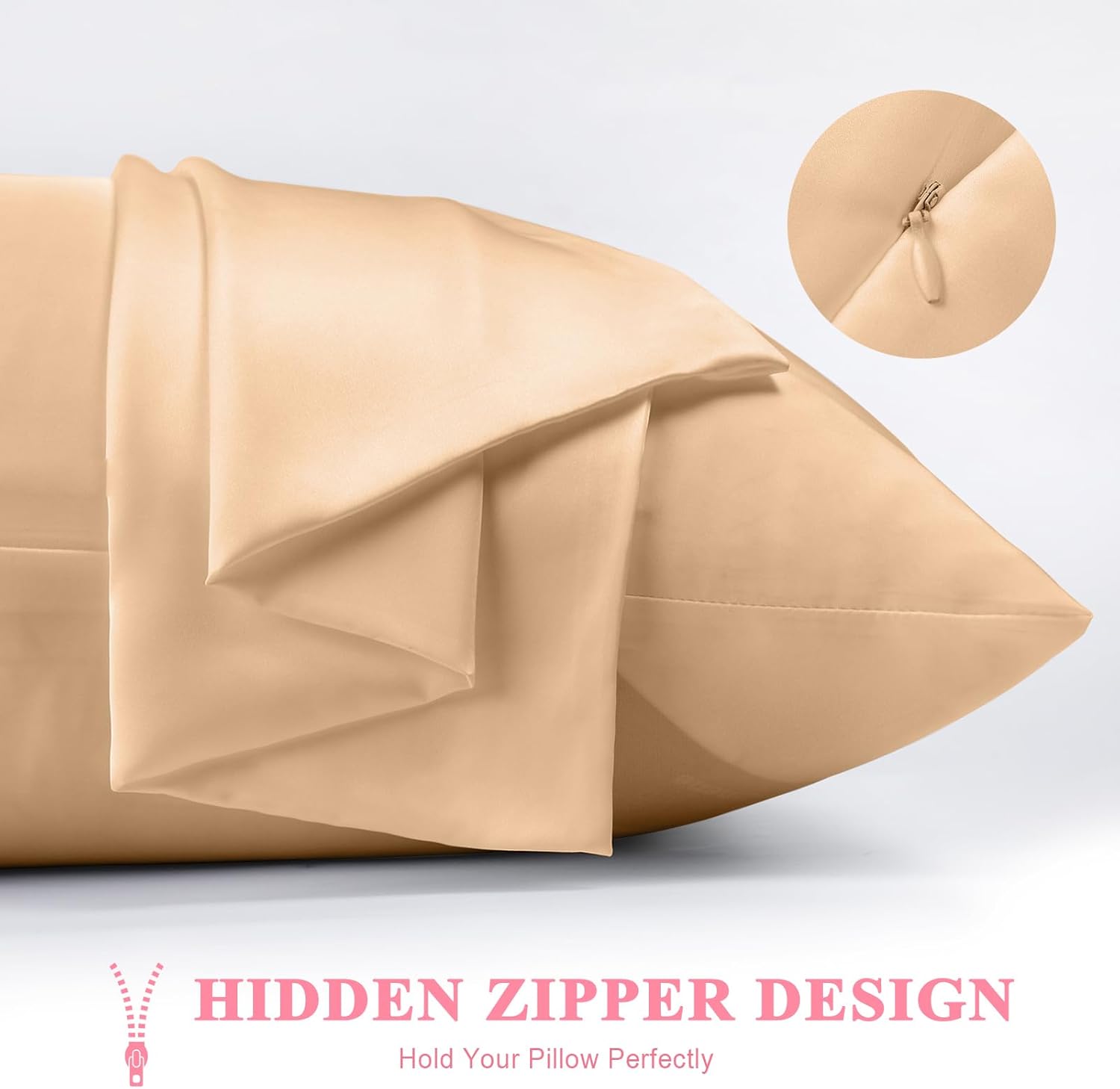 100% Silk Pillowcase 2 Pack for Hair and Skin, Both Sides 23 Momme Grade 6A+ Mulberry Silk Pillowcases with Hidden Zipper, Soft&Smooth Cooling Pillow Cases (Champagne, King 20×36)