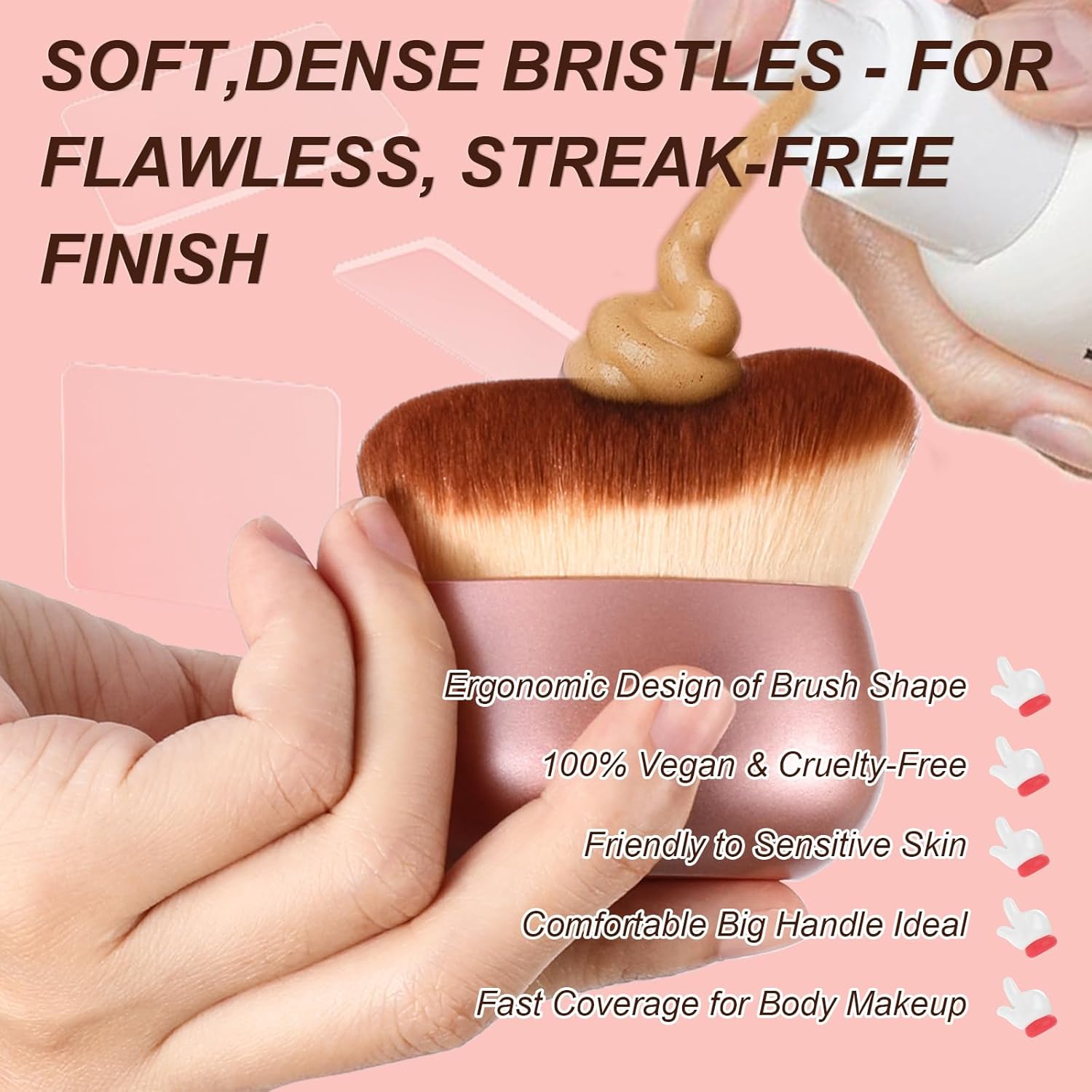- SOFT &DENSE BRISTLES:Featuring ultra-soft, high-density synthetic bristles that won't absorb excess product. BeeYoYe body makeup brush ensures a smooth, flawless finish every time, helping you avoid streaks and patches for a professional, airbrushed look.