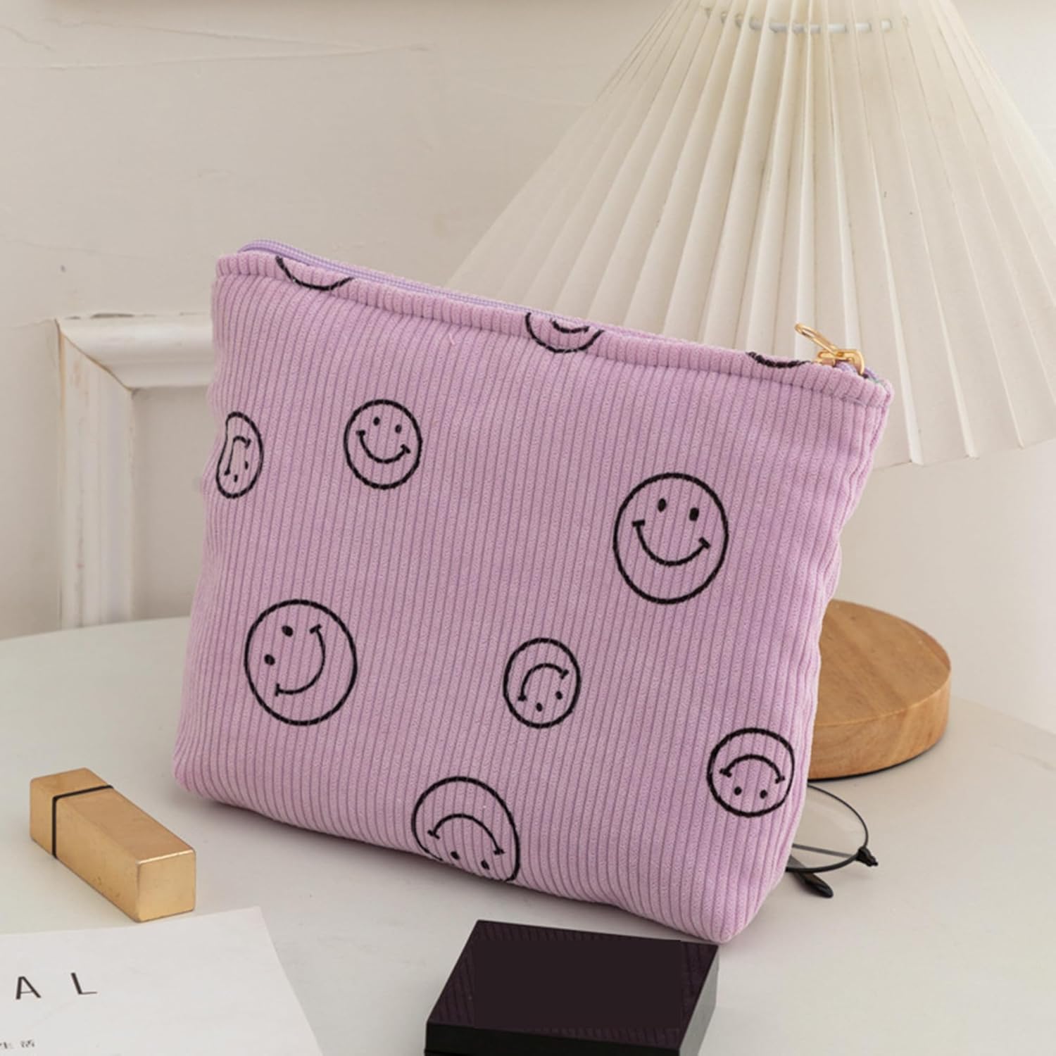 Cosmetic Bags for Women - Corduroy Cosmetic Bag Aesthetic Women Handbags Purses Smile Dots Makeup Organizer Storage Makeup Bag Girls Case Bags (Double Purple Green)