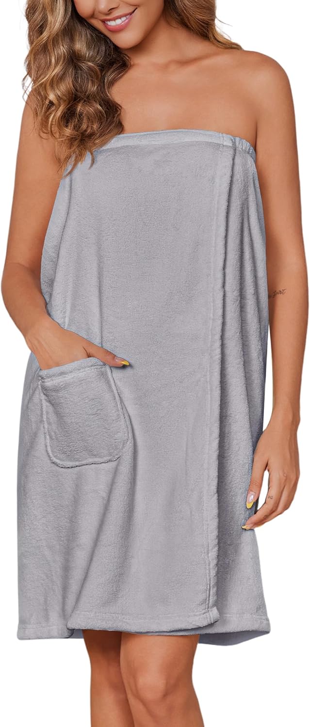 Ekouaer Women's Plush Towel Wrap Soft Lightweight Shower Wrap Absorbent Spa Body Wrap Bath Robe with Velcro S-L