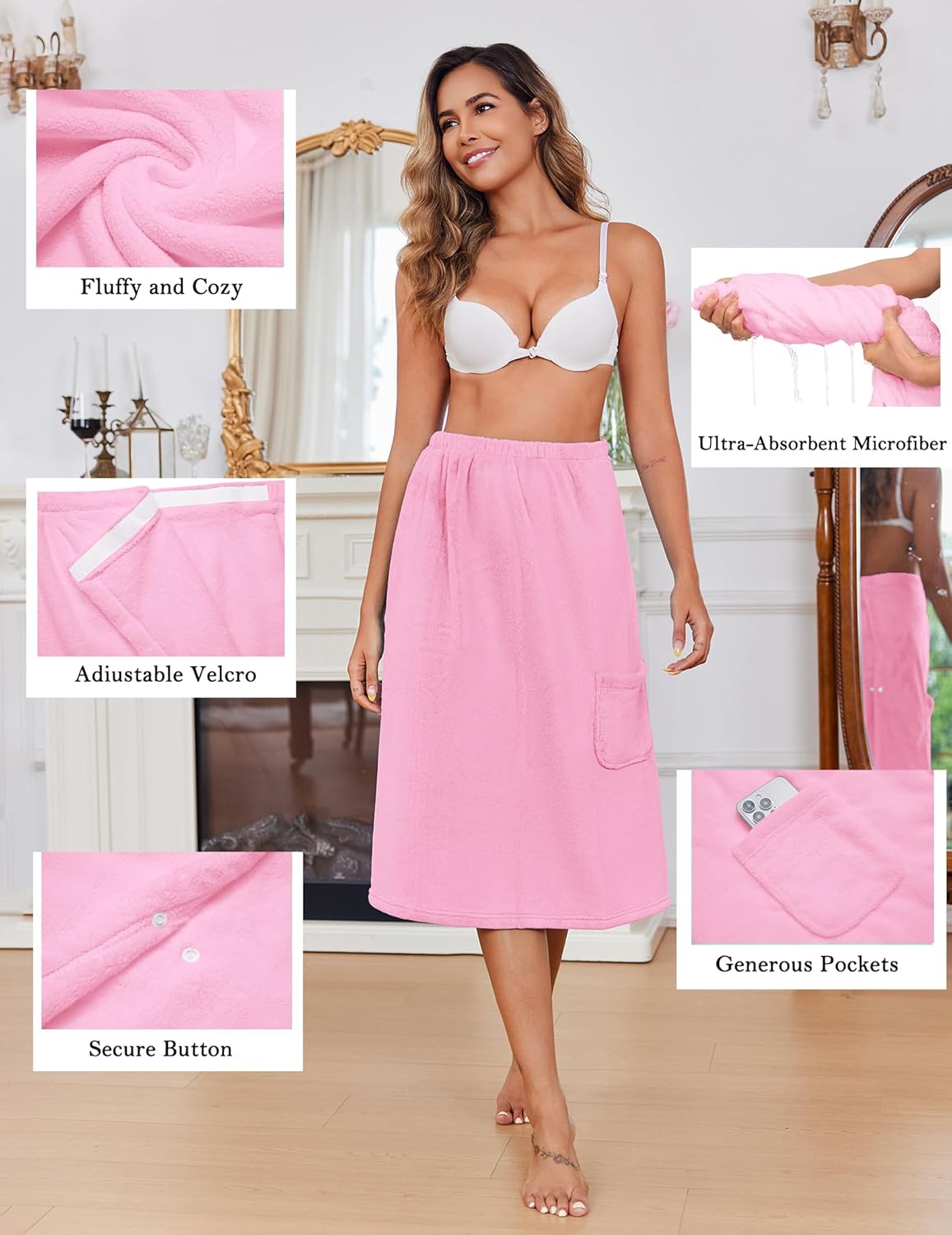 • 【Versatile 3-in-1 Design: Wrap, Robe & Cover-Up】More than just a shower wrap, this stylish piece functions as a bath robe wrap, a bath wrap dress, and even a chic poolside swim after wrap cover-up. Whether you're lounging at home or traveling, this wrap towel for women blends comfort and elegance effortlessly.