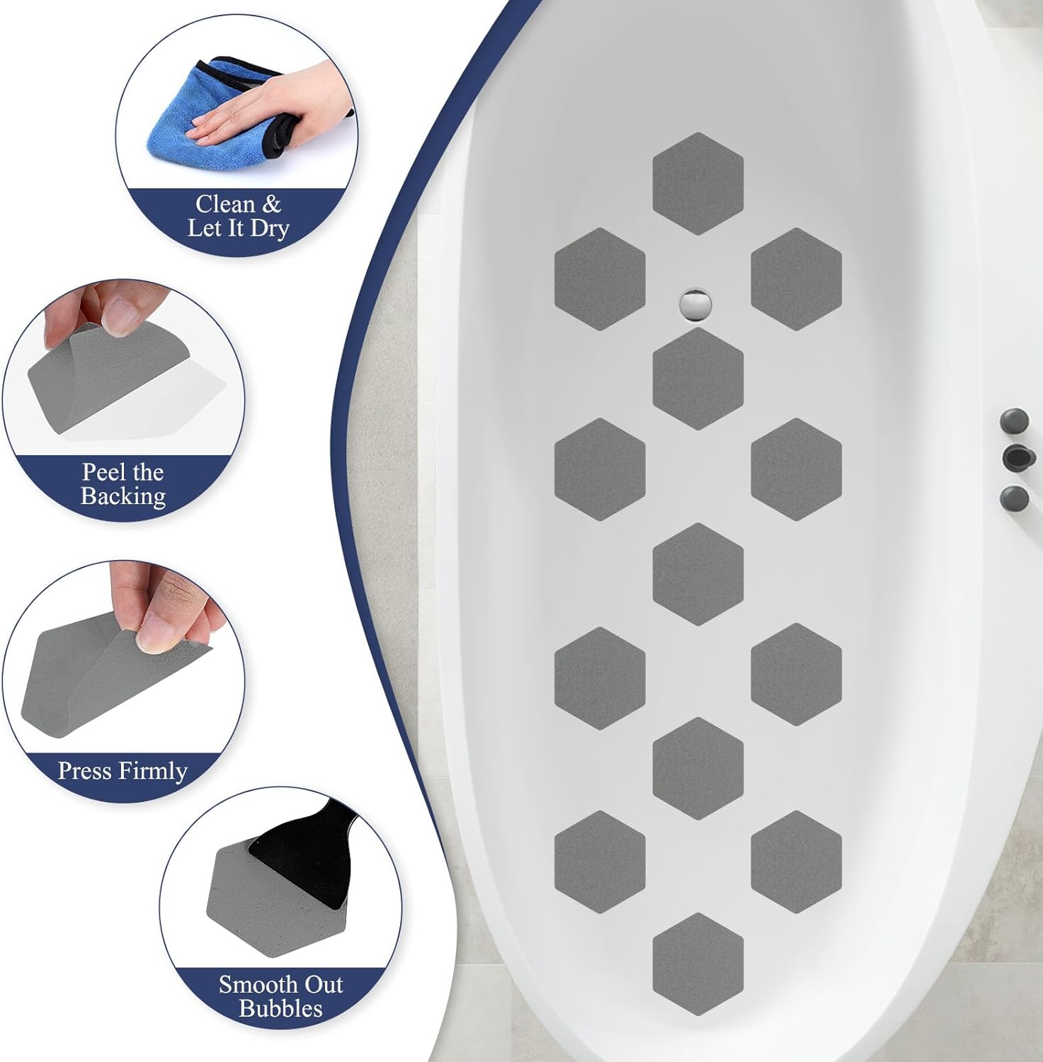 - Easy to Apply & Remove: Clean and dry the surface, peel the non slip shower stickers, smooth them on, and use a squeegee to remove bubbles.Resist curling and remain residue-free over time. Peel off effortlessly, leaving no sticky residue behind