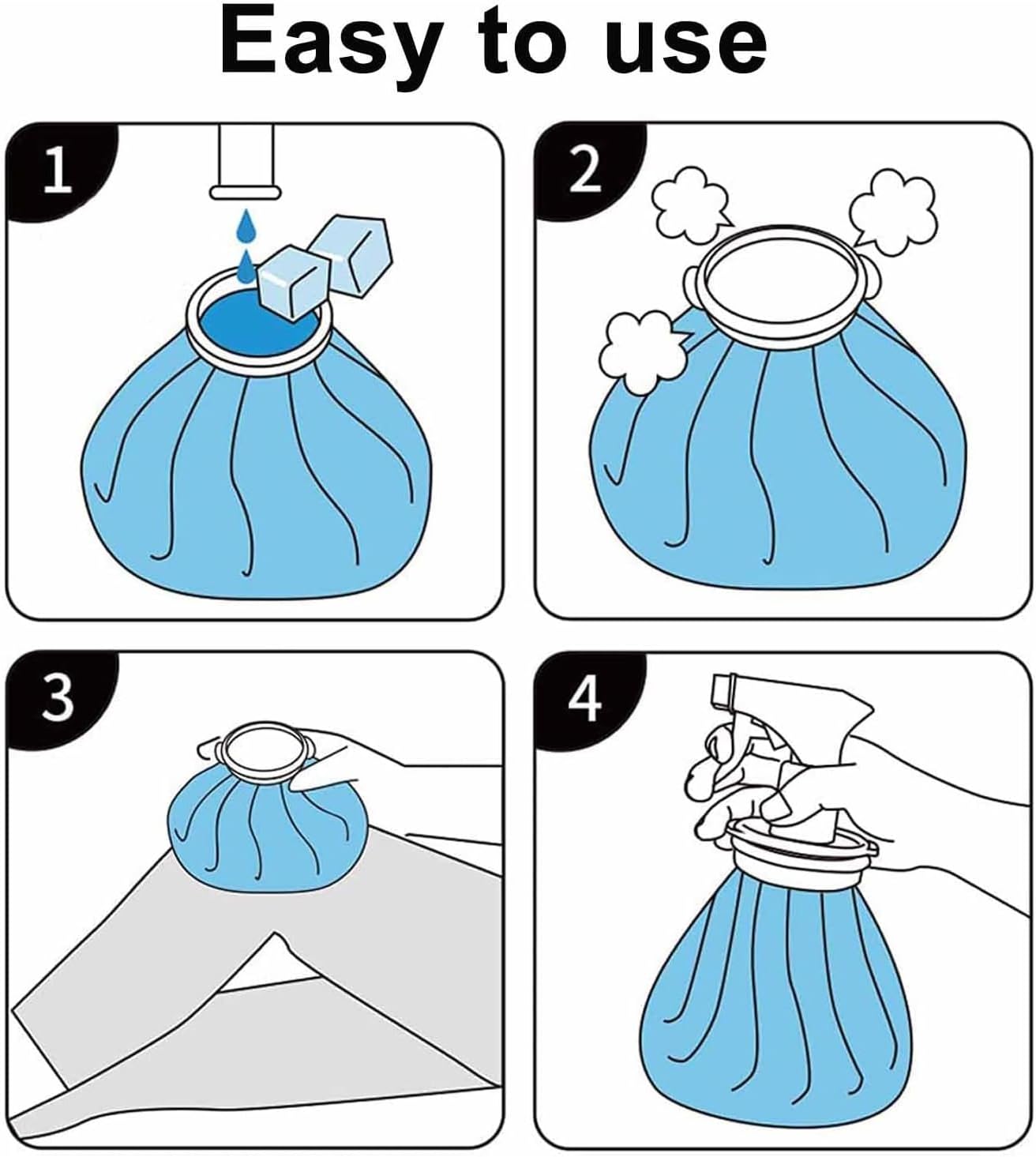 - 【2-in-1 Function: Ice Bag & Mist Spray】Switch effortlessly between ice bag mode and mist spray mode. Use the ice bag to relieve pain, swelling, and inflammation; attach the included spray head to cool down instantly with a refreshing fine mist—perfect for sports, outdoor activities, or hot summer days.