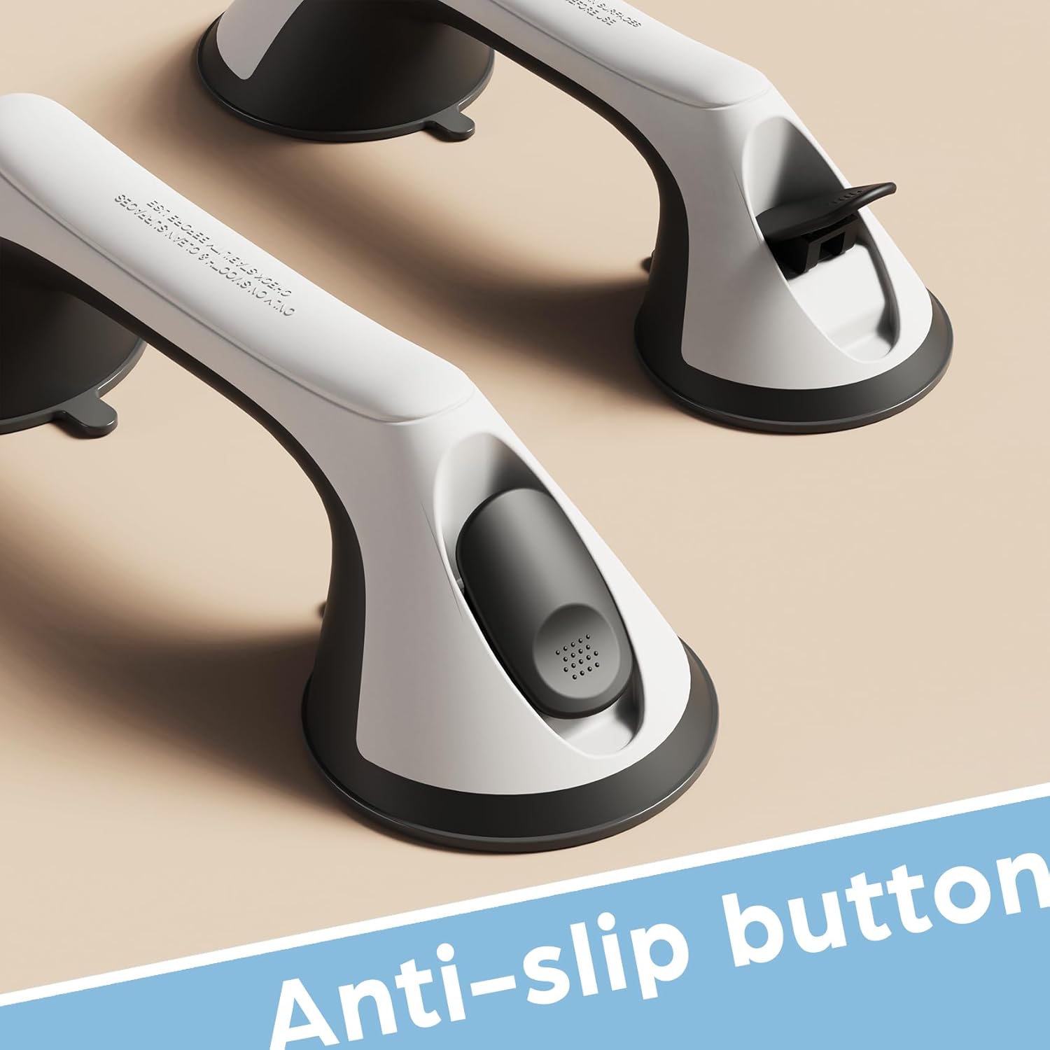 - IMPORTANT NOTE:Only suitable for tiles measuring 4×4 inches or larger. please pay attention that the suction grab bars for shower ONLY sticks on smooth and non-porous AIRTIGHT walls which are NOT air-permeable like metal, glass, tile, marble, stainless steel and acrylic but does NOT apply on uneven tile, wallpaper, dry wall, porous wall, painted wall,etc. Please don't put all the body on the shower grip,handicap grab bars are only used to assist and properly support part of body weight.