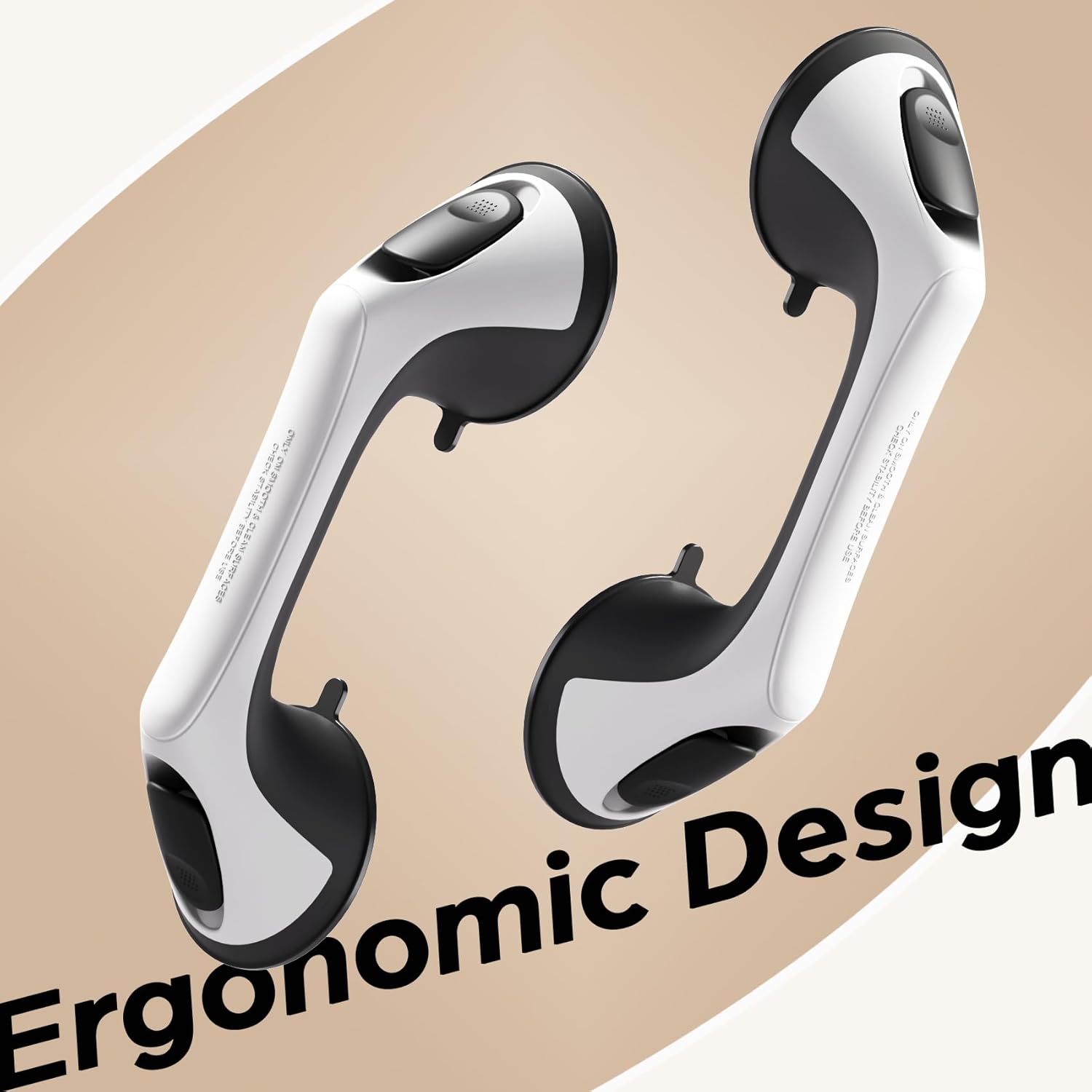 2 Pack 12 Inch Grab Bars for Bathtubs and Showers for Seniors, Heavy Duty Shower Handle for Elderly, Suction Cup Removable Handrails Handicap Bath Grip Bathroom Safety Grips (Black and White