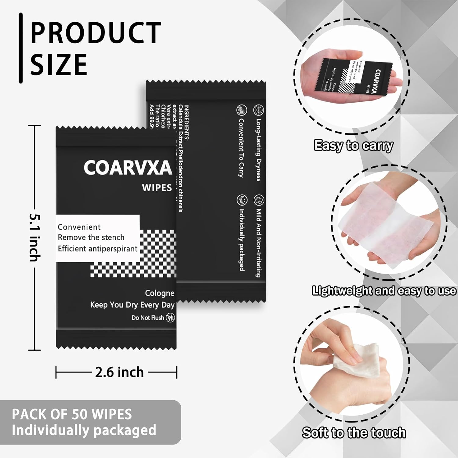 - 【Package Includes】You will receive 50 individually packaged Cologne Body deodorant wipes in a box, providing you with an ample supply for long-term use. Each wipe is individually wrapped, and the dimensions of the outer packaging are approximately 2.6 x 5.1 inches, ensuring that it meets your usage and replacement needs effectively.