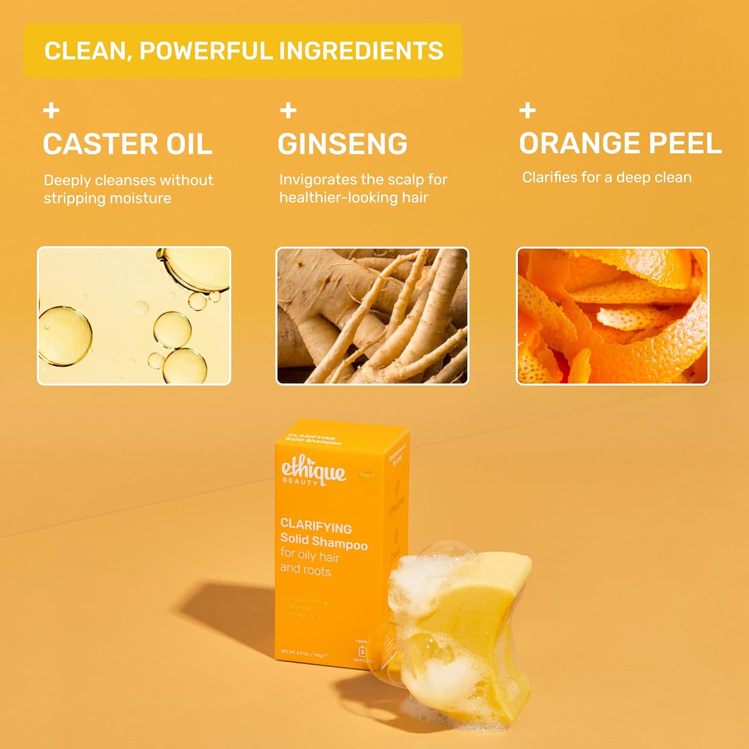 Ethique Beauty Mini Sampler Solid Shampoo & Conditioner Bar Set - Clarifying Shampoo for oily hair with Castor Oil