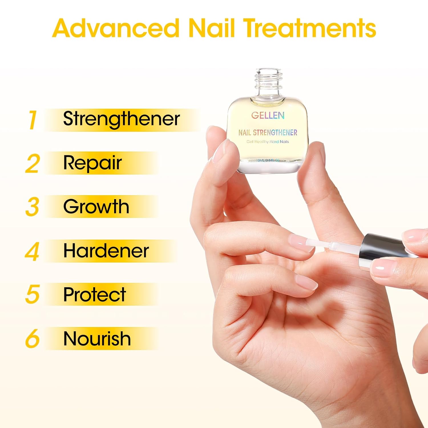 - *Added Ginger Nail Serum & Pro Care Nail Strengthener: Gellen 8-in-1 Nail Strengthener is specifically formulated to strengthen damaged nails, repair soft and weak nails, promote nail growth, and provide nourishment. Added ginger root extract supports healthy nail growth from the roots. Itβs an excellent everyday nail care solution, especially for nail repair after gel polish removal. Non-Nail Polish