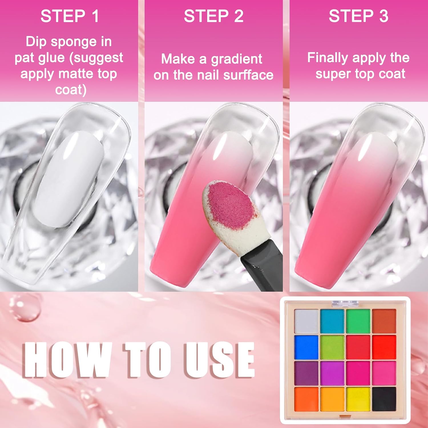- 【Easy to Use and Remove】Simply apply the ombre nail powder onto a cured nail polish or gel base, seal it with a top coat, and enjoy stunning nails that will catch everyone's attention. When it's time for a new look, the powders can be easily removed with nail polish remover. Rub with a sponge stick will be easier to get amazing effect.