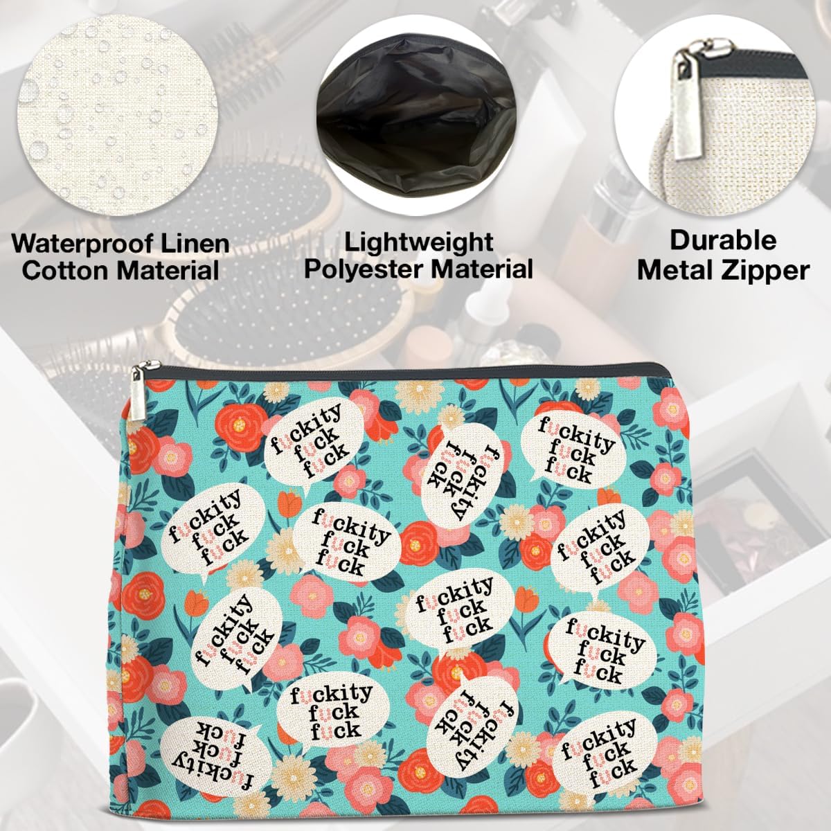 Humor Floral Makeup Bag Gifts for Women Cute Flowers Funny Cosmetic Bag Zipper Pouch