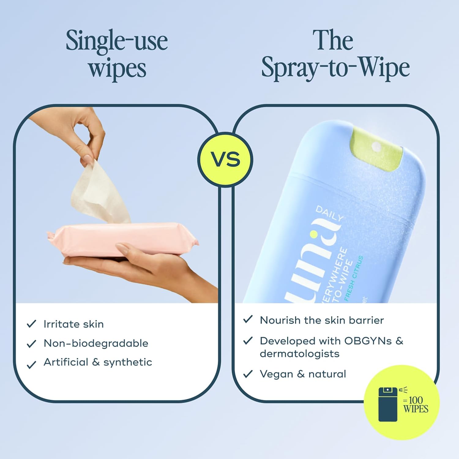 Luna Daily The Everywhere Spray-To-Wipe | Cooling Body Mist & Hydrating pH-Balanced Feminine Care | Anti-Chafing & Odor Control | Travel Essential for Women, Gym & Daily Care, 30ml