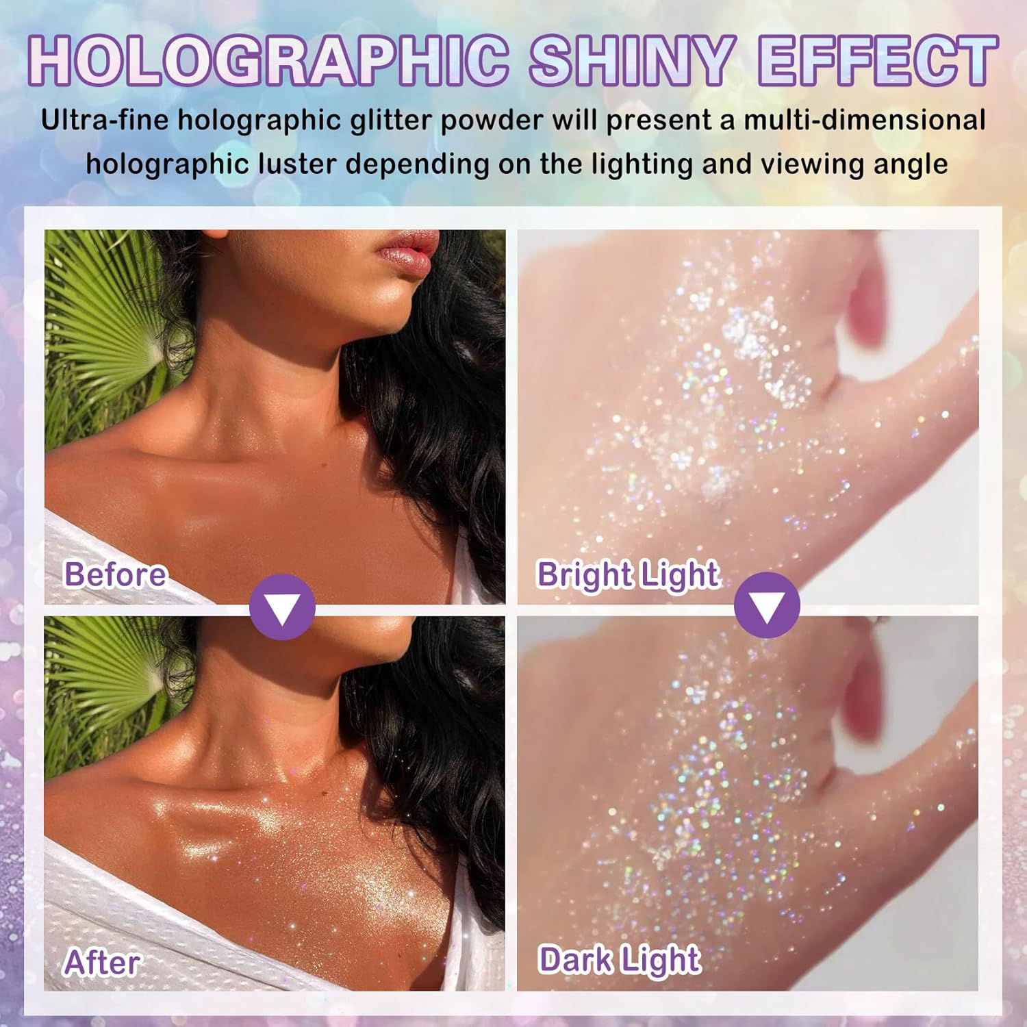 - 【Versatile Use】Use to brightens makeup,illuminate legs,shoulders,neck,and hair.Use to elevates outfits,shine at music festivals,carnivals,or theme parties to become the center of attention