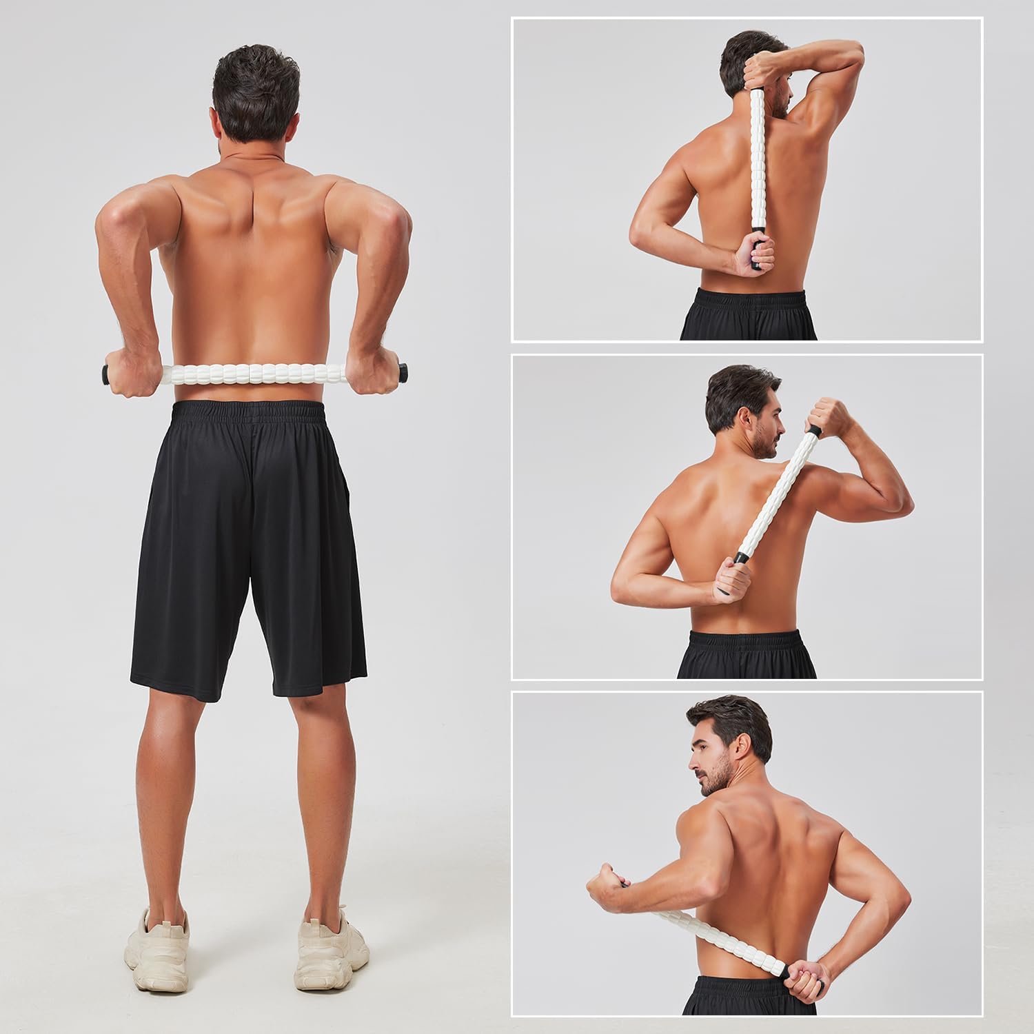 - 【🩸24" Blood Circulation Booster Massage Stick】Features a single-core steel shaft paired with 15 precision plastic rollers, covering large muscle areas across the body. The reinforced central steel core ensures stability during use, while the pressure distribution design stimulates blood circulation. Ergonomic split handles allow for flexible two-handed manipulation – a clinically validated myofascial relief solution.