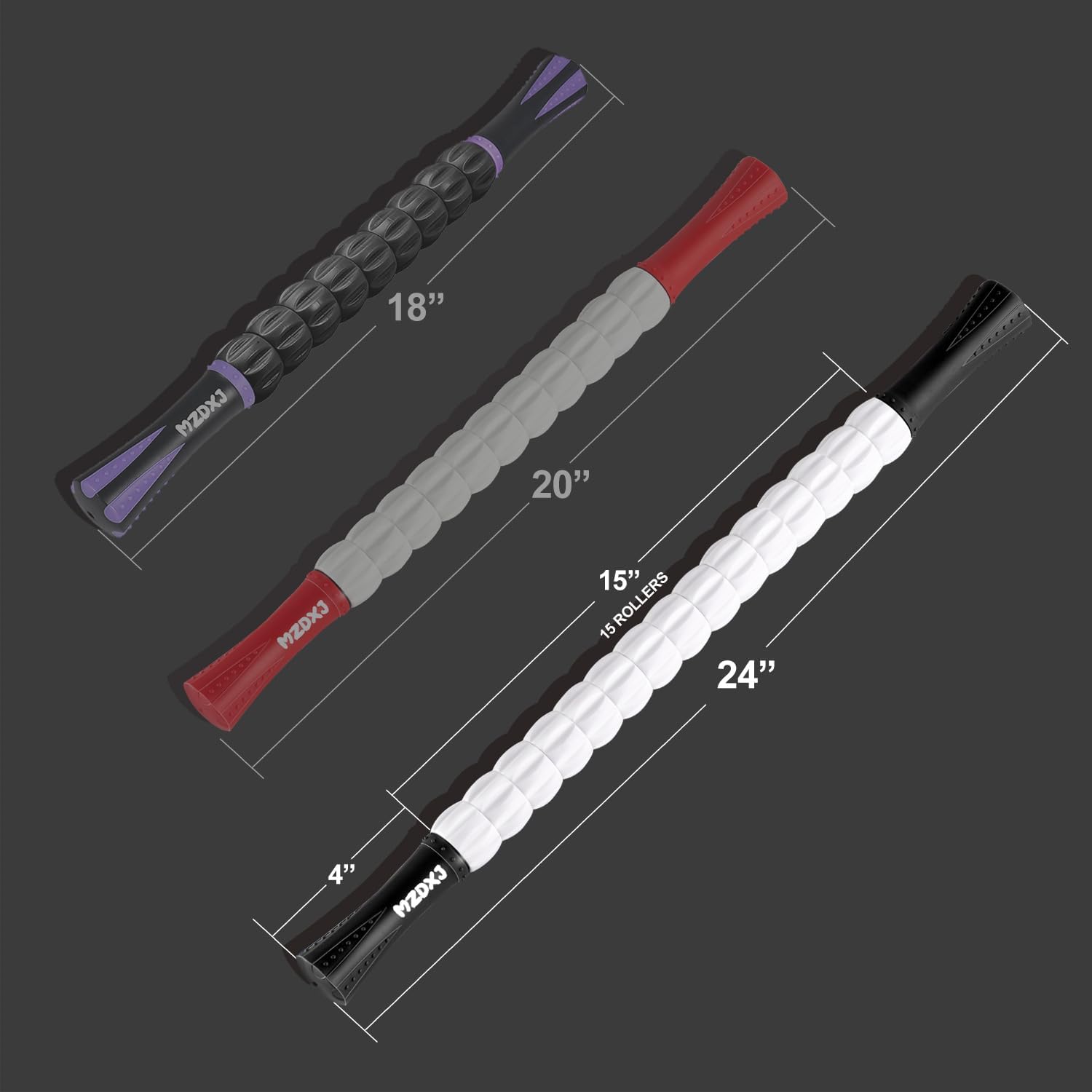 MZDXJ Muscle Roller Stick for Athletes - Deep Tissue Fascia Blaster & Roller Massager for Myofascial Pain Relief - Handheld Physical Therapy & Recovery Tool(-Black White-24 inch)