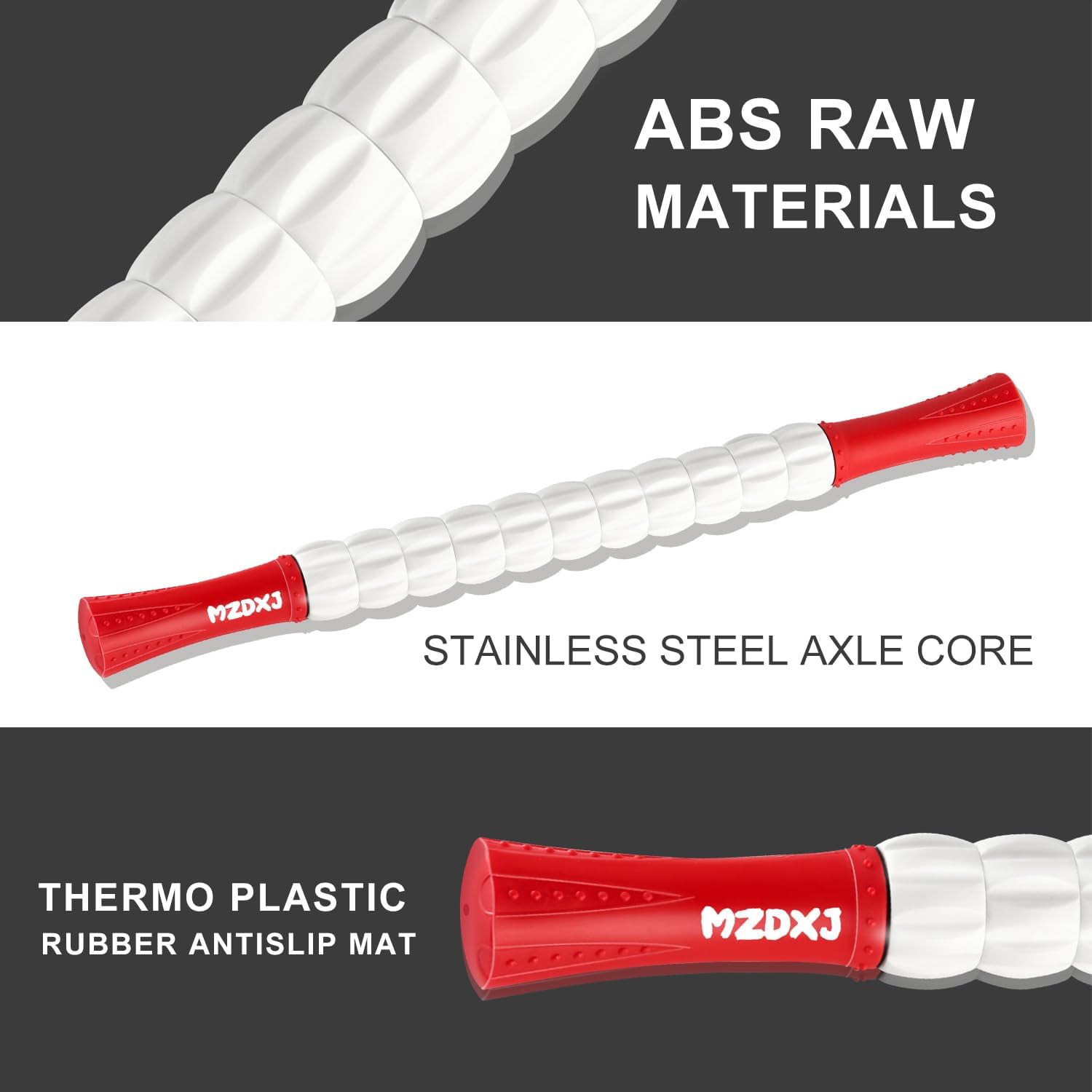 Muscle Roller Stick for Athletes - Deep Tissue Fascia Blaster & Roller Massager for Myofascial Pain Relief - Handheld Physical Therapy & Recovery Tool(Red White-20 inch)