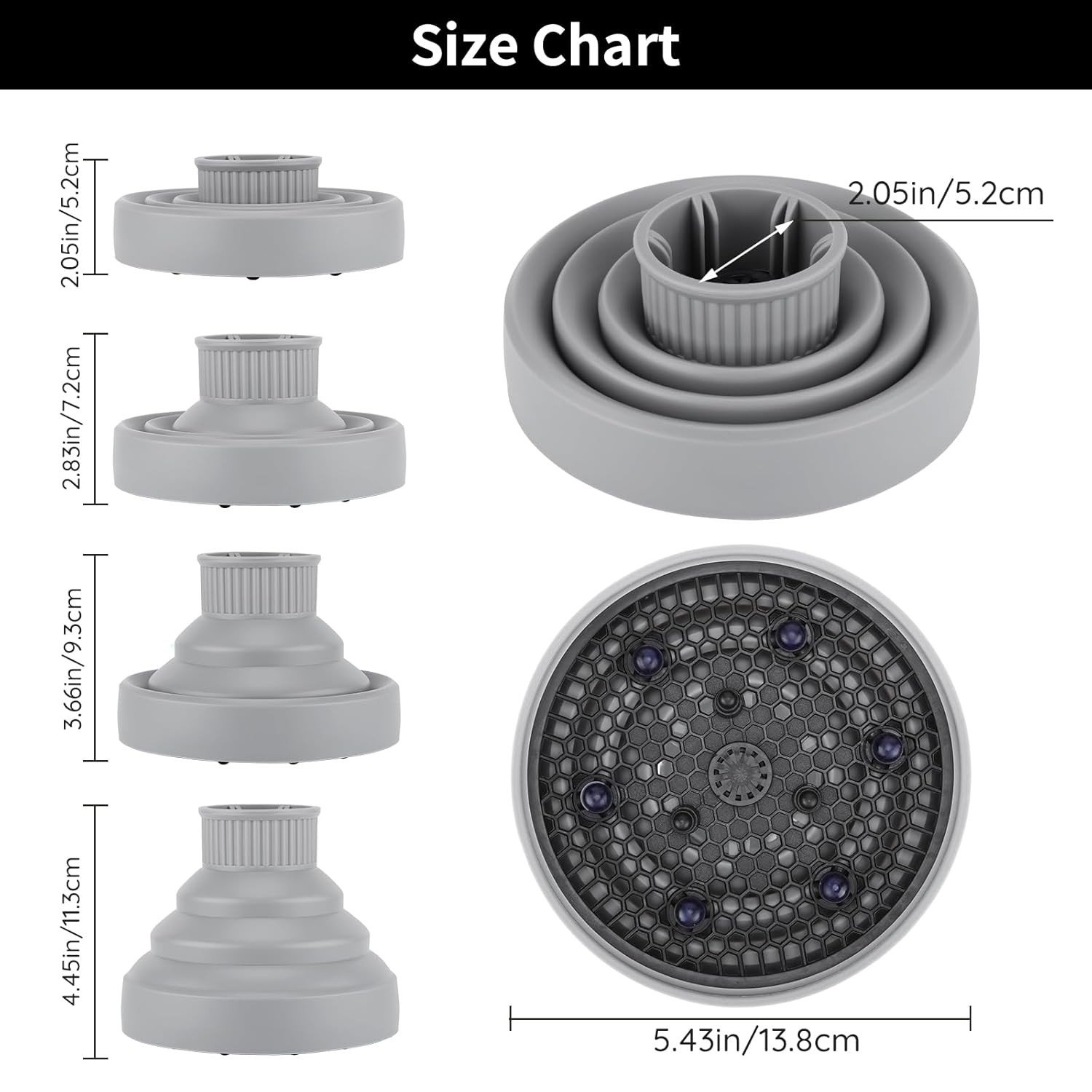 - Fits Hair Dryers 1.54-1.69": It is designed to fit hair dryers (Nozzle 1.54-1.69"/3.9-4.3cm), so be sure to research and see if this diffuser will attach to your current hair dryer before purchasing