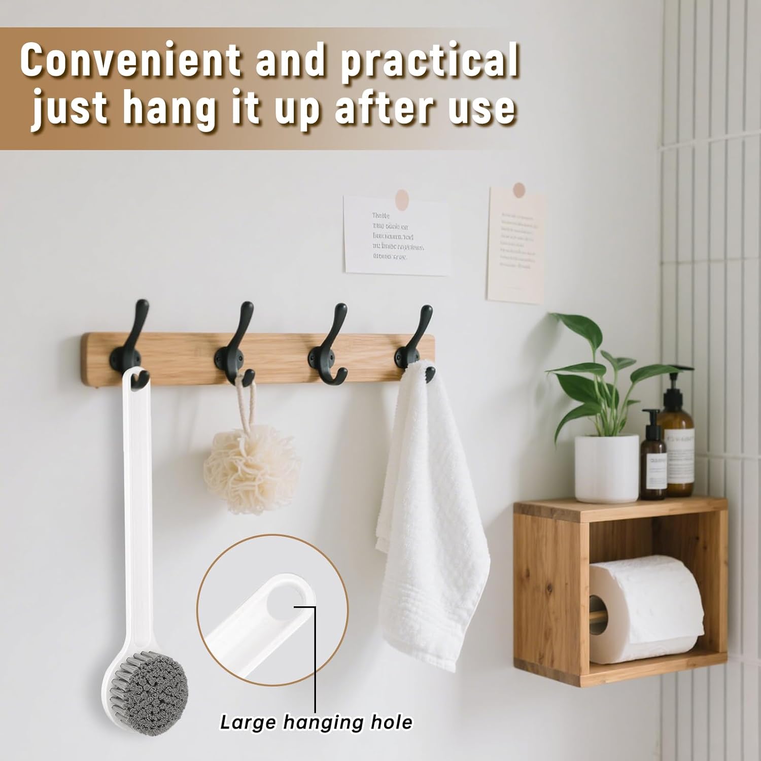 Shower Brush with Soft Nylon Bristles, Long Handle Shower Bath Brush, Back Scrubber for Shower, Body Exfoliator for Wet or Dry Brushing