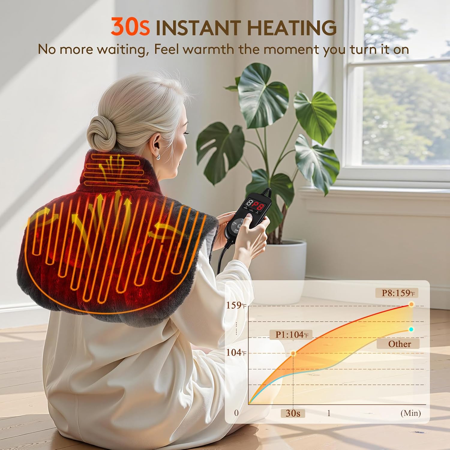 - 6X Deeper Heat Penetration for Targeted Pain Relief: Featuring tourmaline stones and a dual-layer carbon fiber heating system, this heating pad emits far-infrared waves that closely match the body’s natural frequency. The deep-penetrating warmth reaches muscle tissues, boosting blood circulation and alleviating pain. With its advanced multi-layer technology, it delivers 6X deeper heat penetration—making it an ideal solution for seniors suffering from chronic aches and stiffness