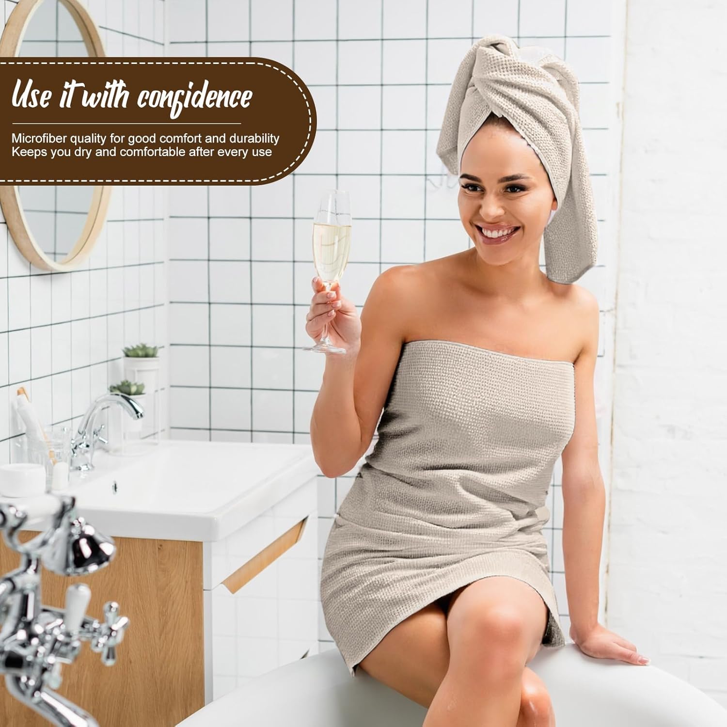 12 Pack Microfiber Bath Towels Bulk 27'' x 60'' Oversized Size Bath Towel Highly Absorbent Extra Large Soft Drying for Shower Beach Salon Winter Sport Spa Gym (Waffle,Beige)